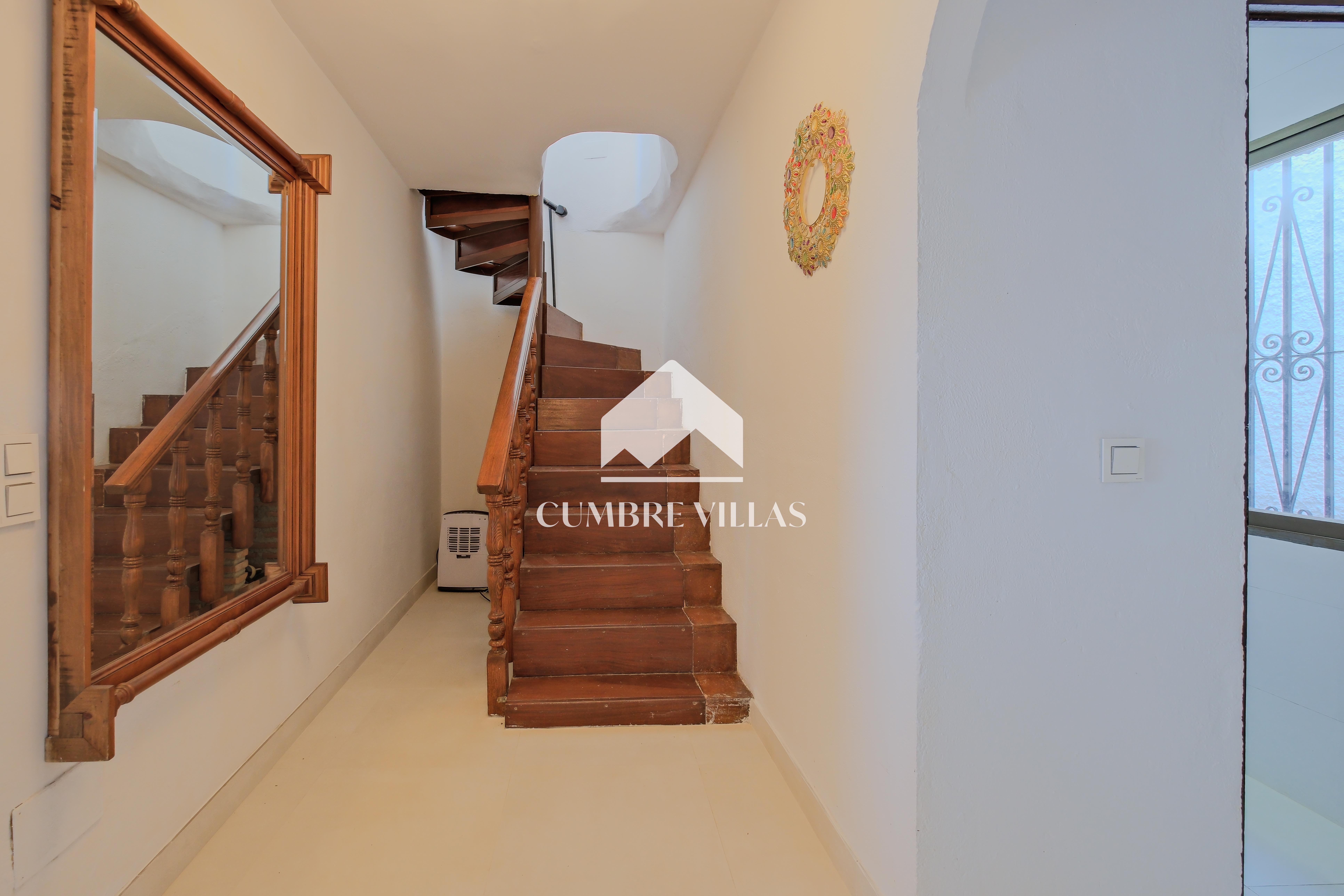 The house is located on the upper part of the plot, facing the sea. There is space to park several vehicles at the entrance, as well as a large garage. Positioned to take full advantage of the views, the entrance to the house is found alongside a solarium and a covered terrace with barbecue area. Inside, the property offers spectacular sea views and sunrises, visible from almost every corner.