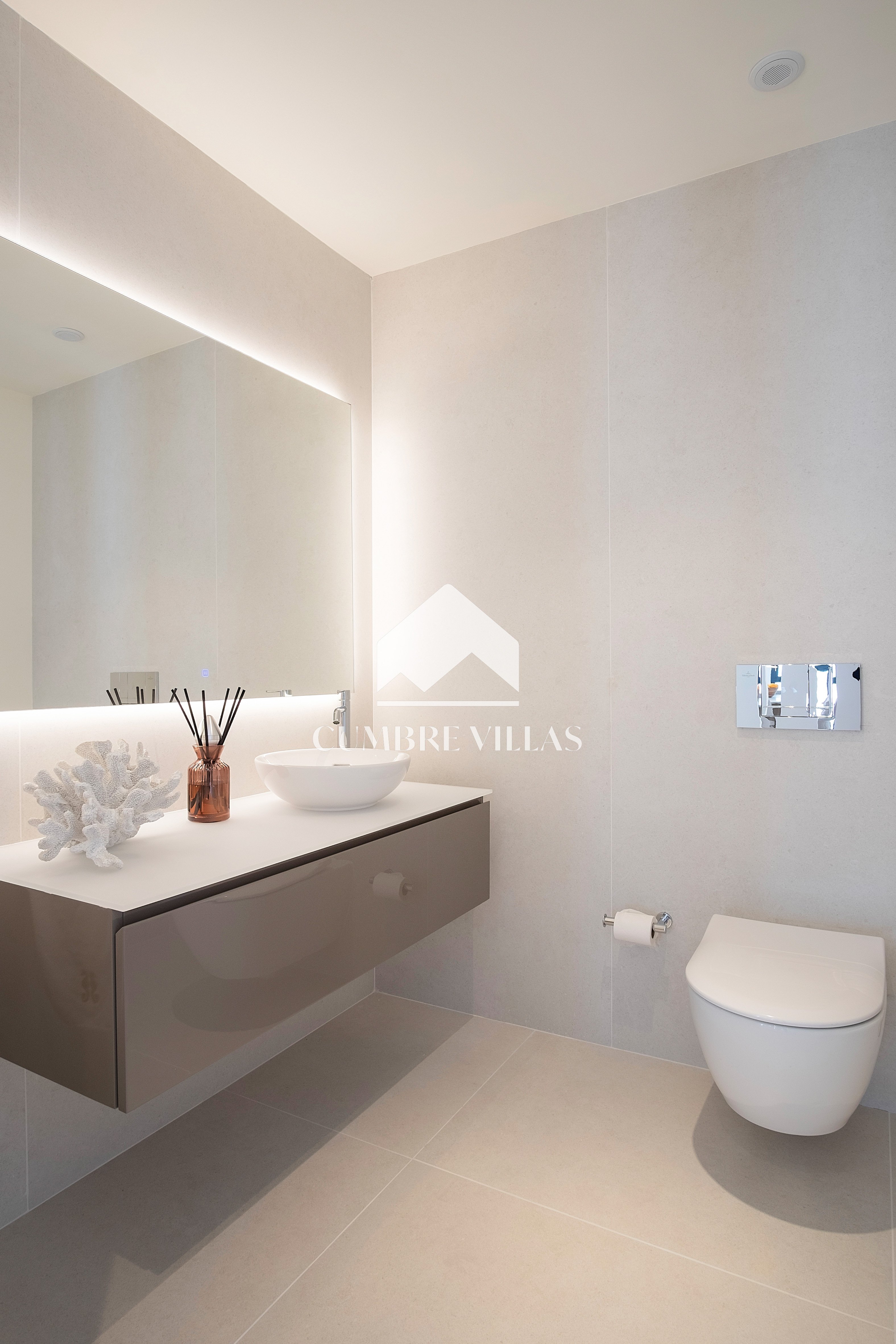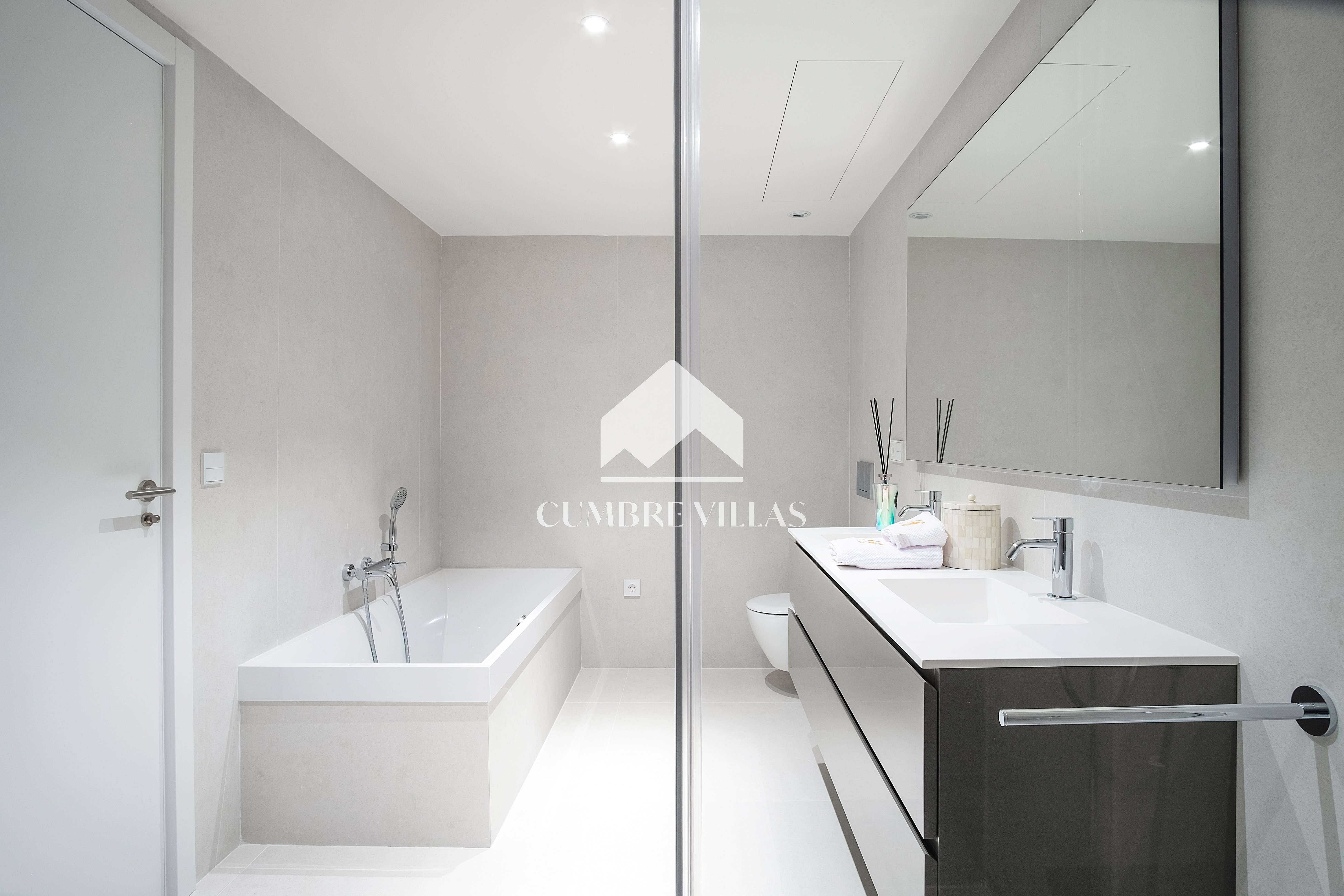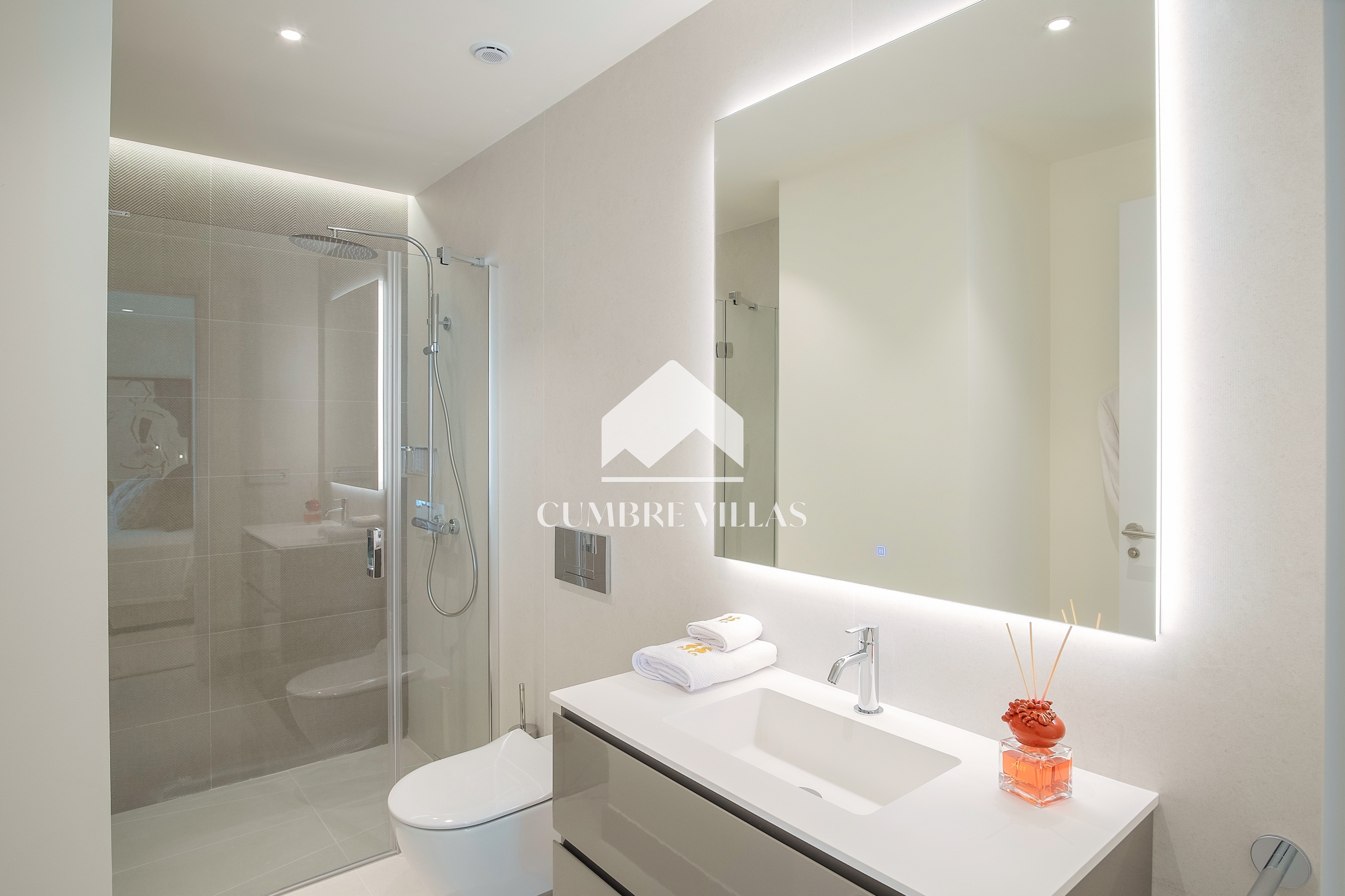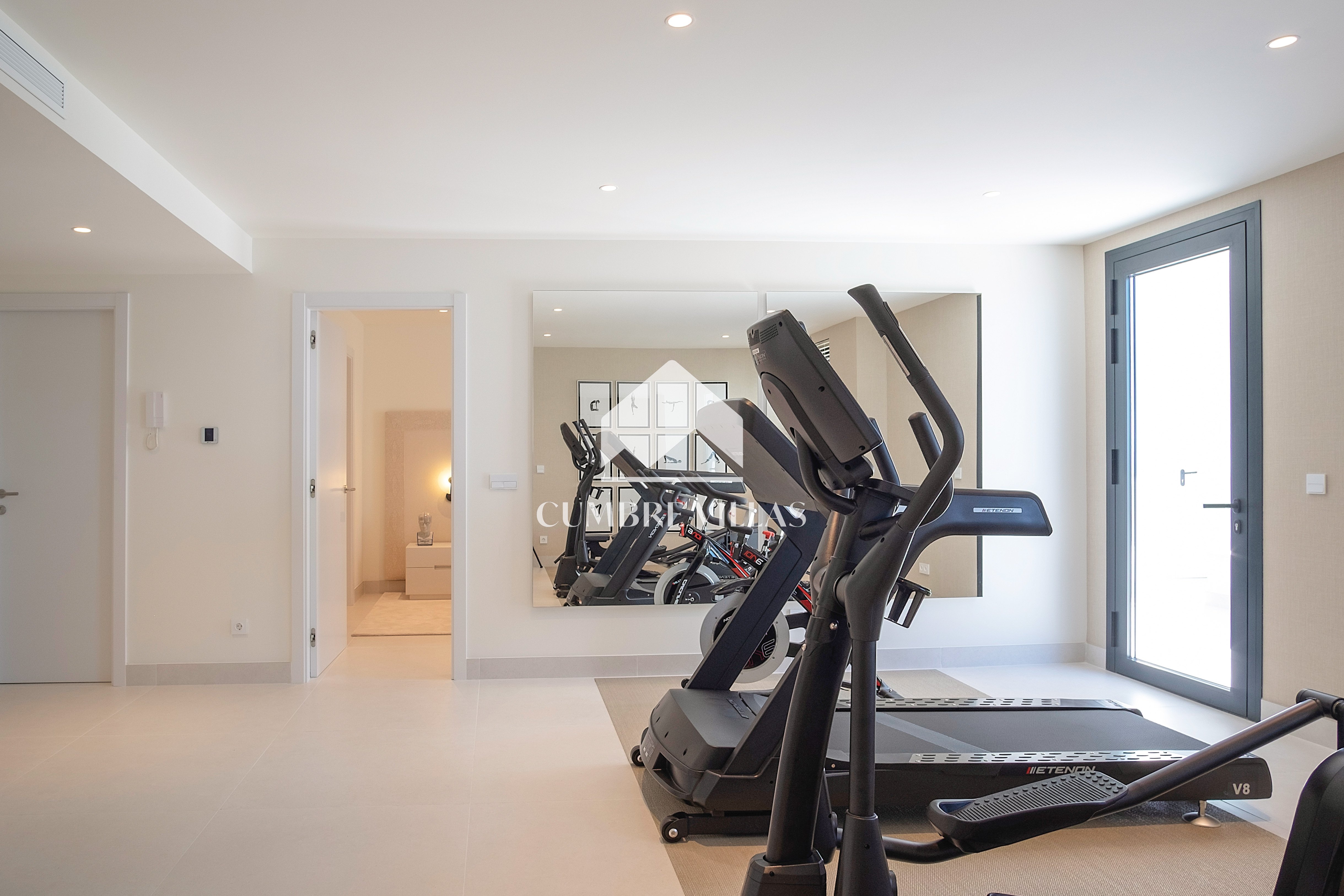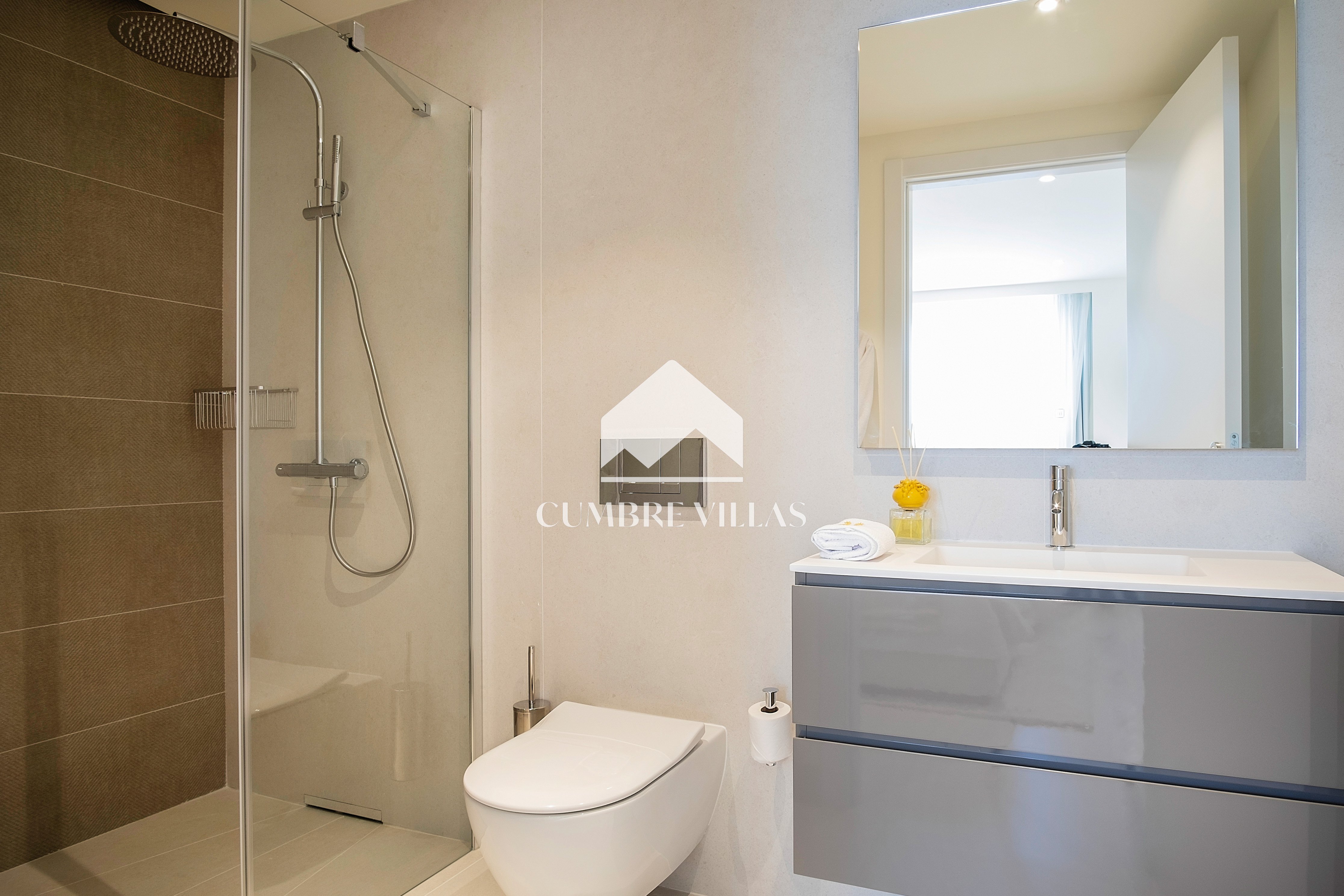 The first floor showcases 2 en-suite bedrooms and ample fitted wardrobes. The bedrooms have glass sliding doors that open directly to a terrace. One floor up, the staircase/lift provides access to a fabulous rooftop solarium and a technical terrace – the perfect place to install a jacuzzi or to just relax and enjoy the breathtaking views in all privacy.
