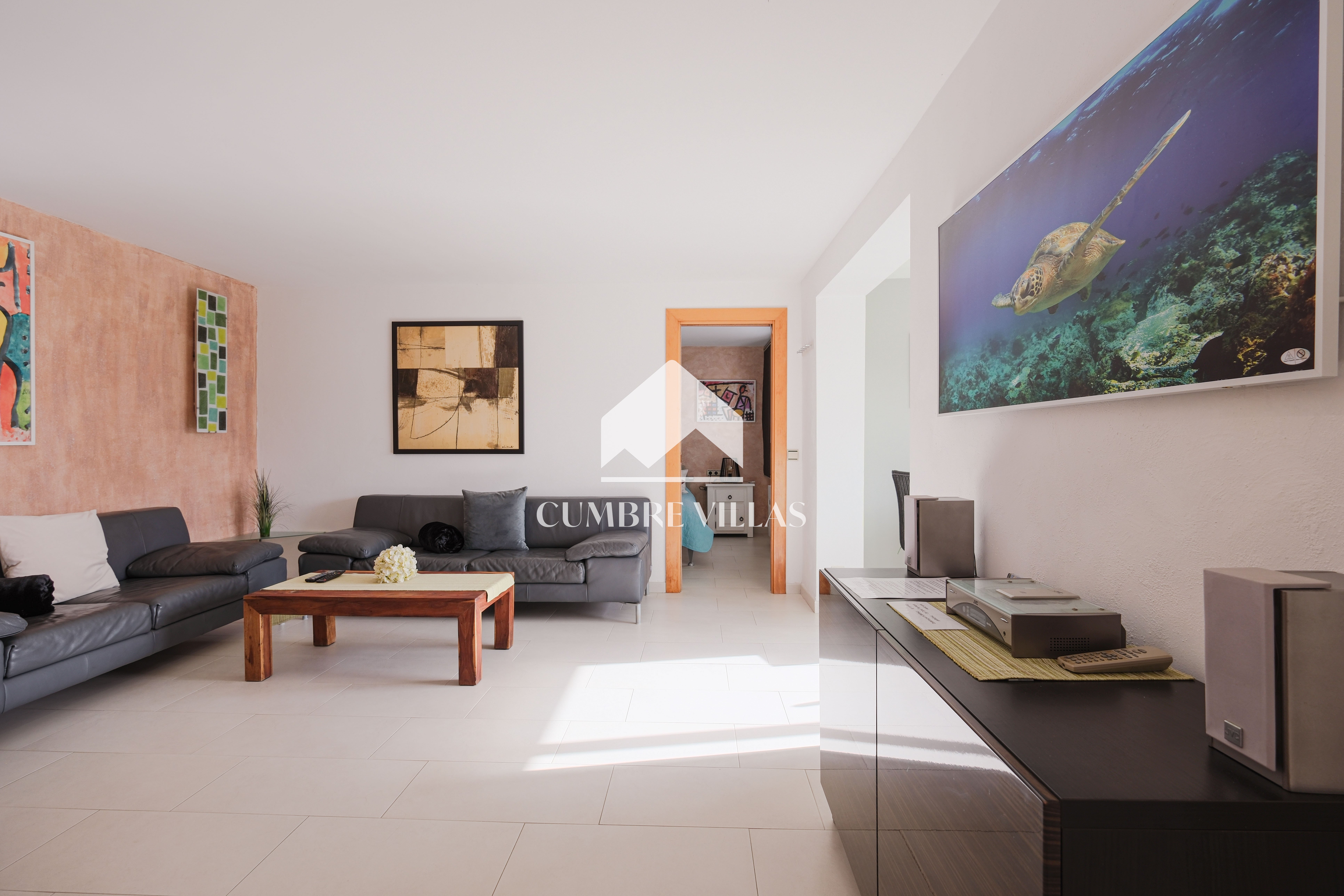 The property has three floors, with the lower floor being a separate apartment. The main house consists of three bedrooms, two bathrooms, a living room, a kitchen and an upper terrace with outdoor kitchen. There is also a large sunbathing area next to the swimming pool and a barbecue area, ideal for enjoying the warm summer days in good company.