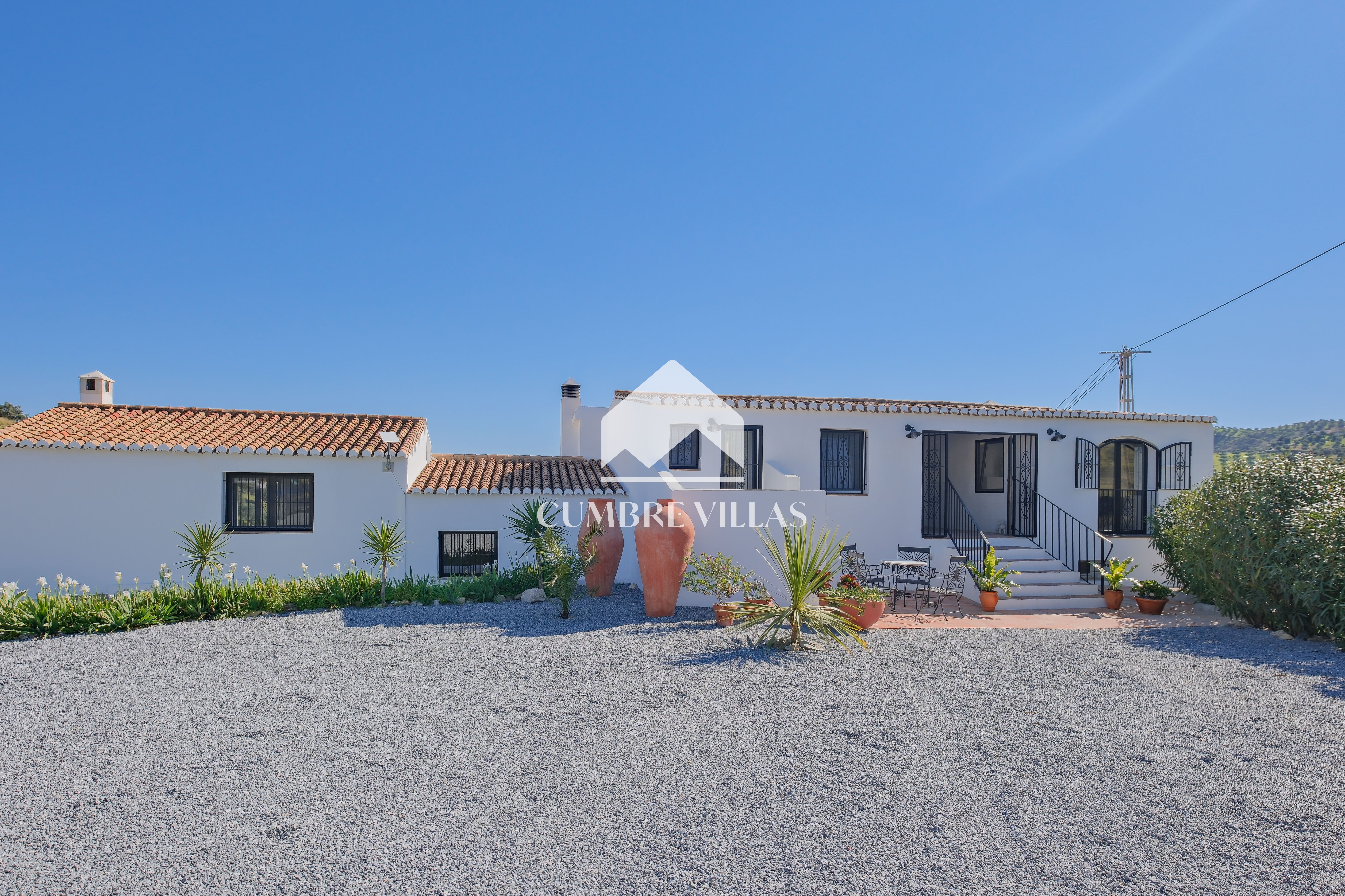 This stunning 5,800 m² country property for sale has been recently renovated with top-quality materials, joining two houses into one. The homes remain independent yet are internally connected, making this the ideal property for two families or groups of friends who want to live together while still enjoying their privacy. The charm of a traditional Andalusian cortijo has been carefully preserved, while the property also offers the comforts of a modern home, such as a private pool and solar panels.