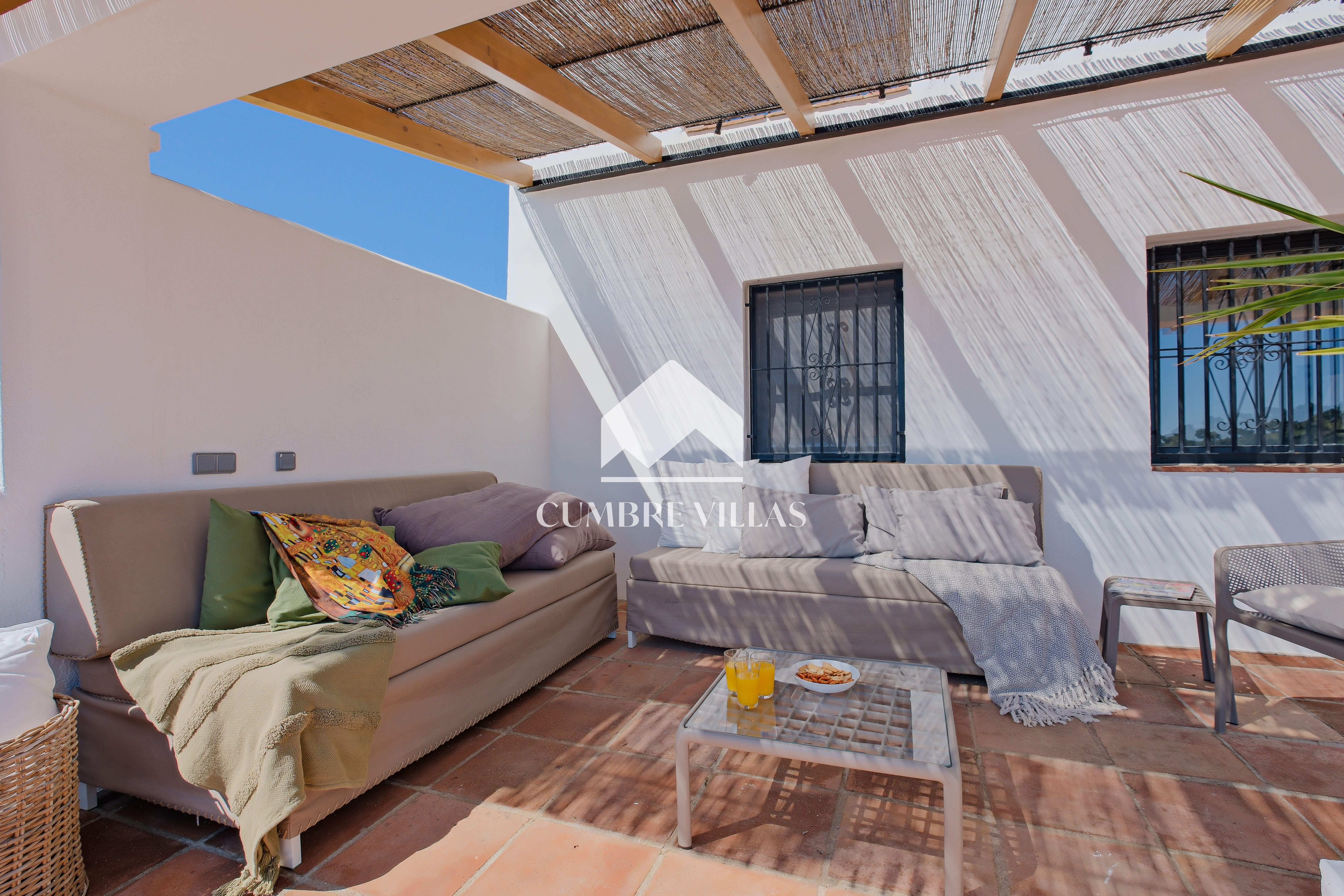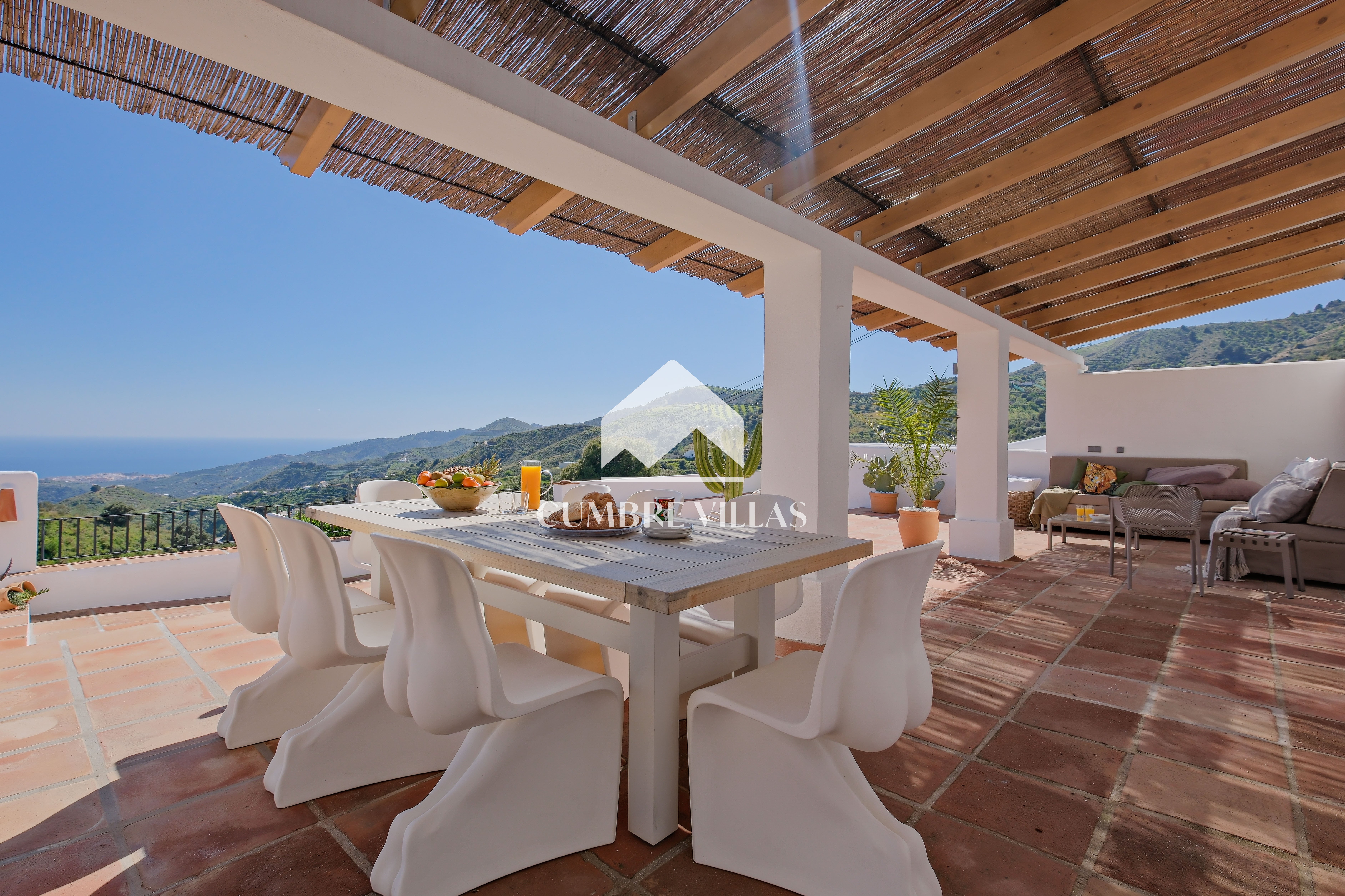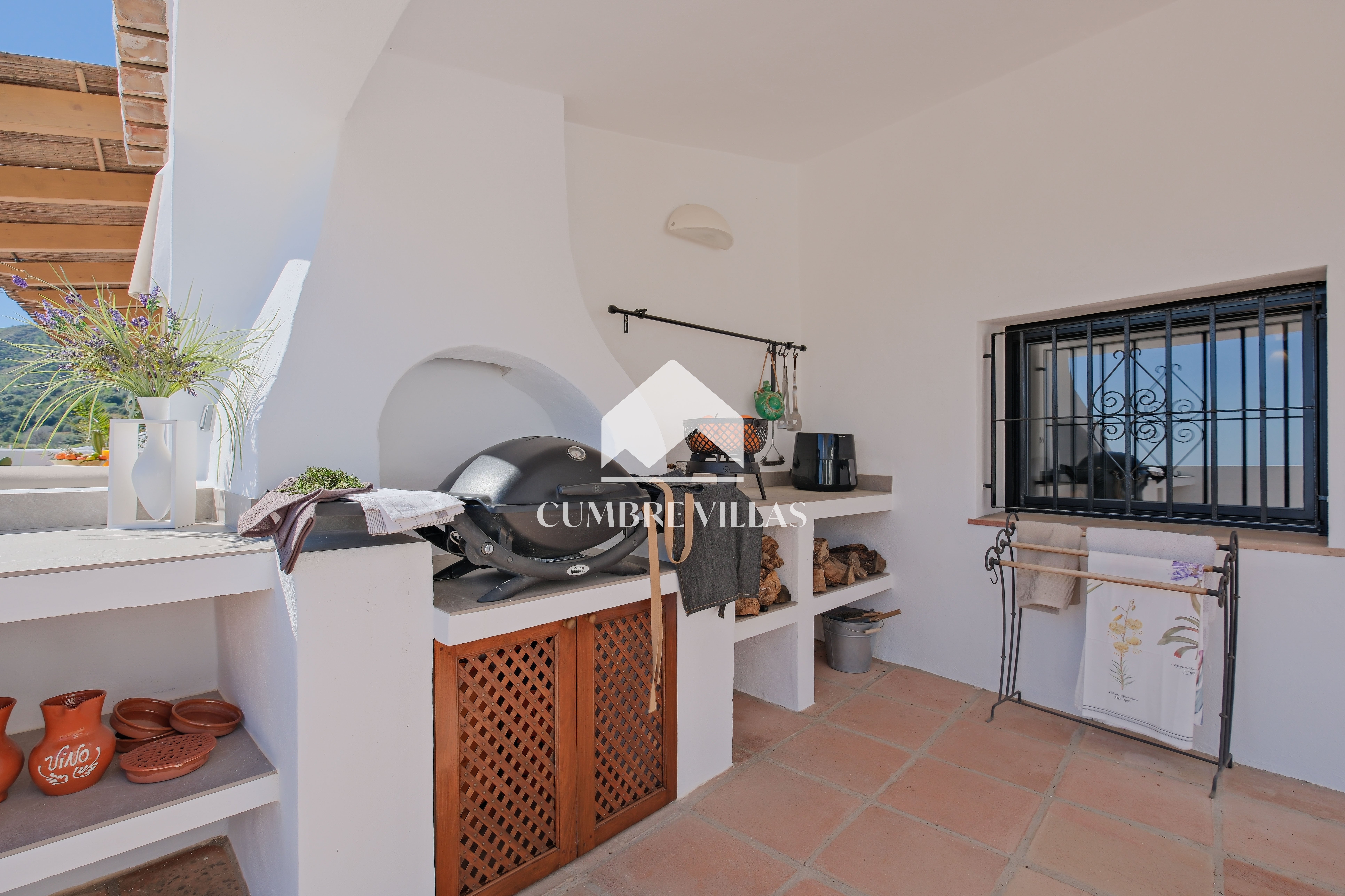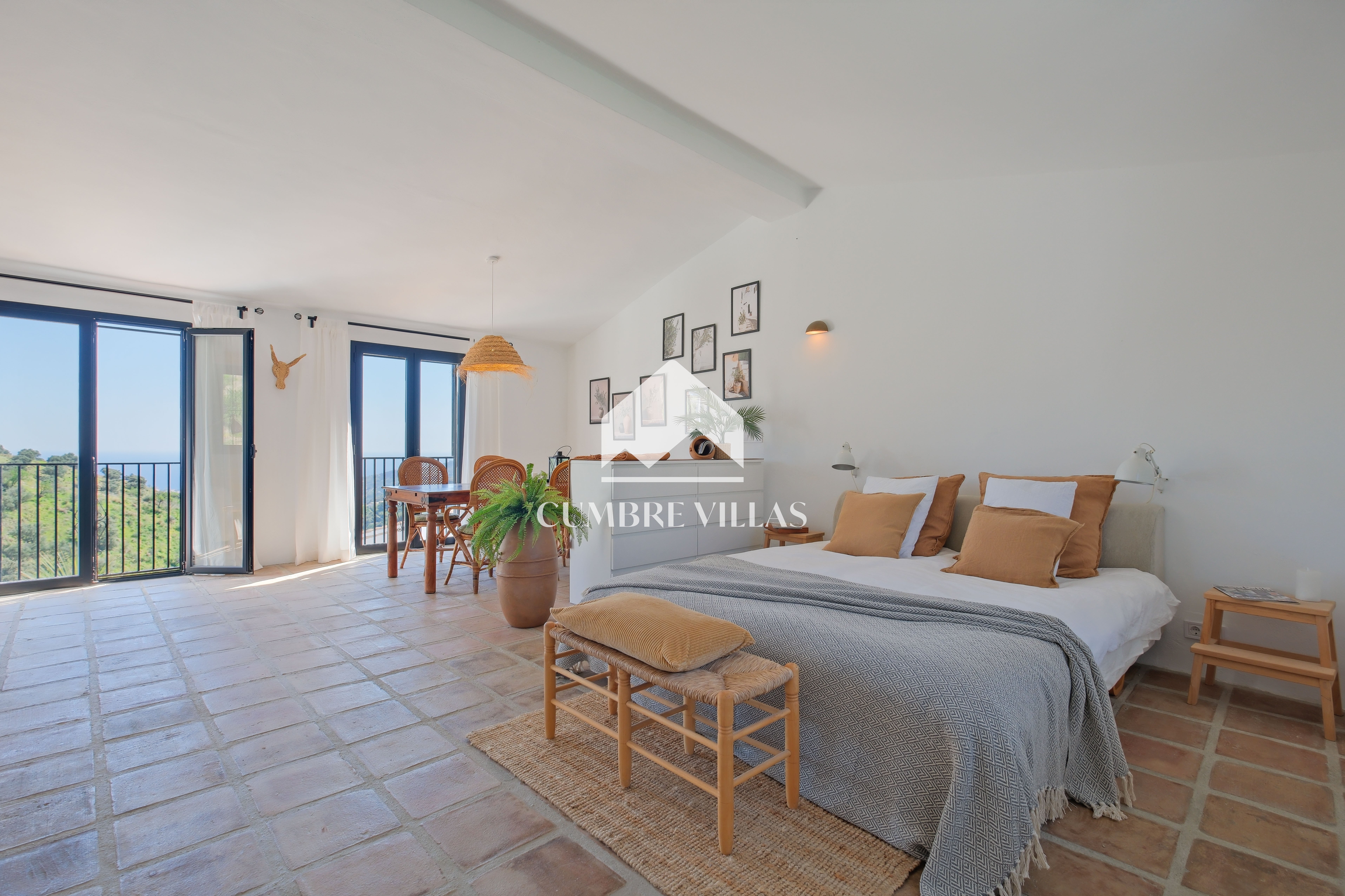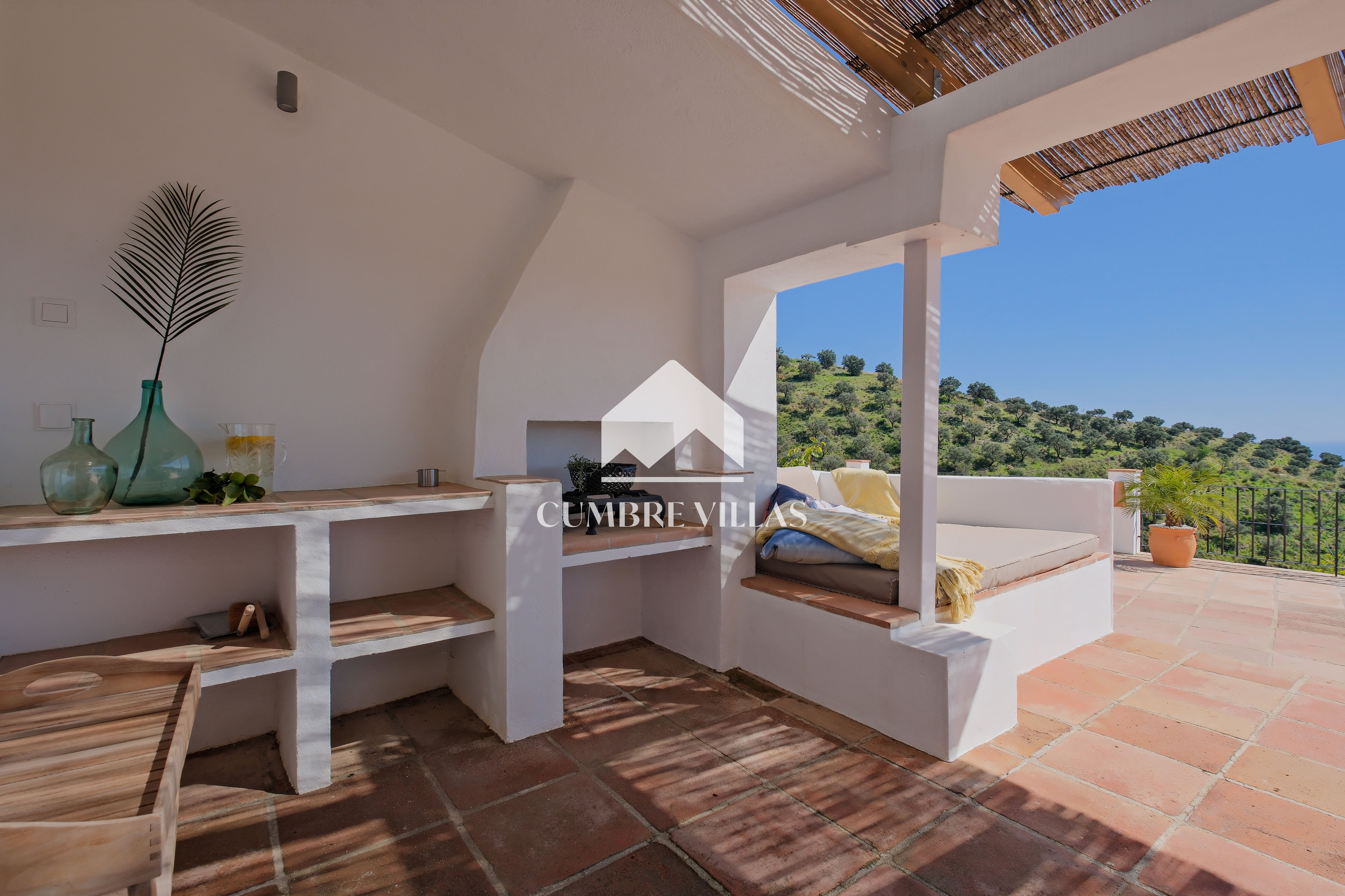 Outdoors, multiple terraces have been designed to make the most of the Andalusian lifestyle. You’ll find a small pool, two outdoor kitchens, and a private corner with a shower—imagine rinsing off here while taking in the panoramic views. The entire property has been designed to highlight the breathtaking sea and mountain views, especially magical in spring when nature is in full bloom.