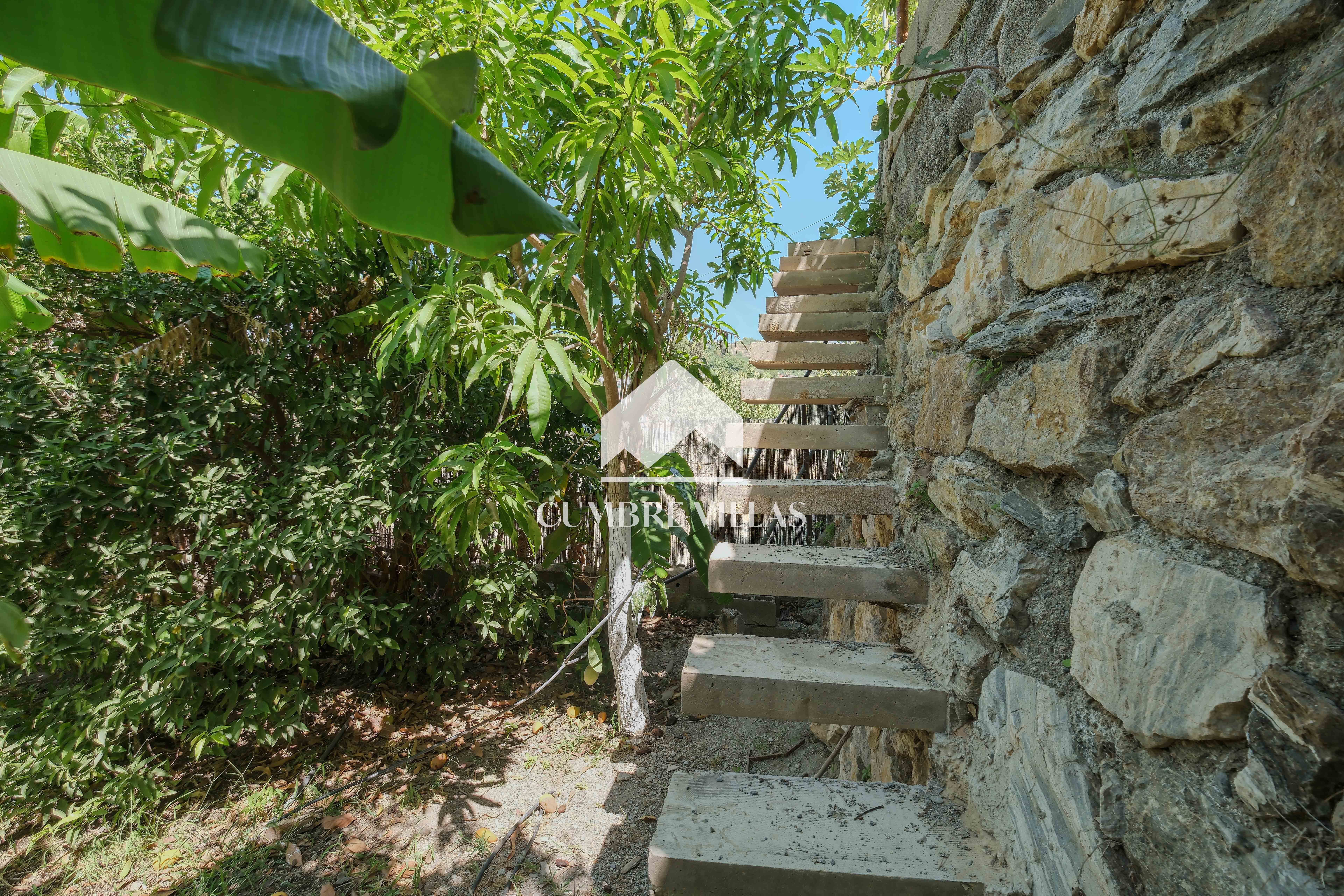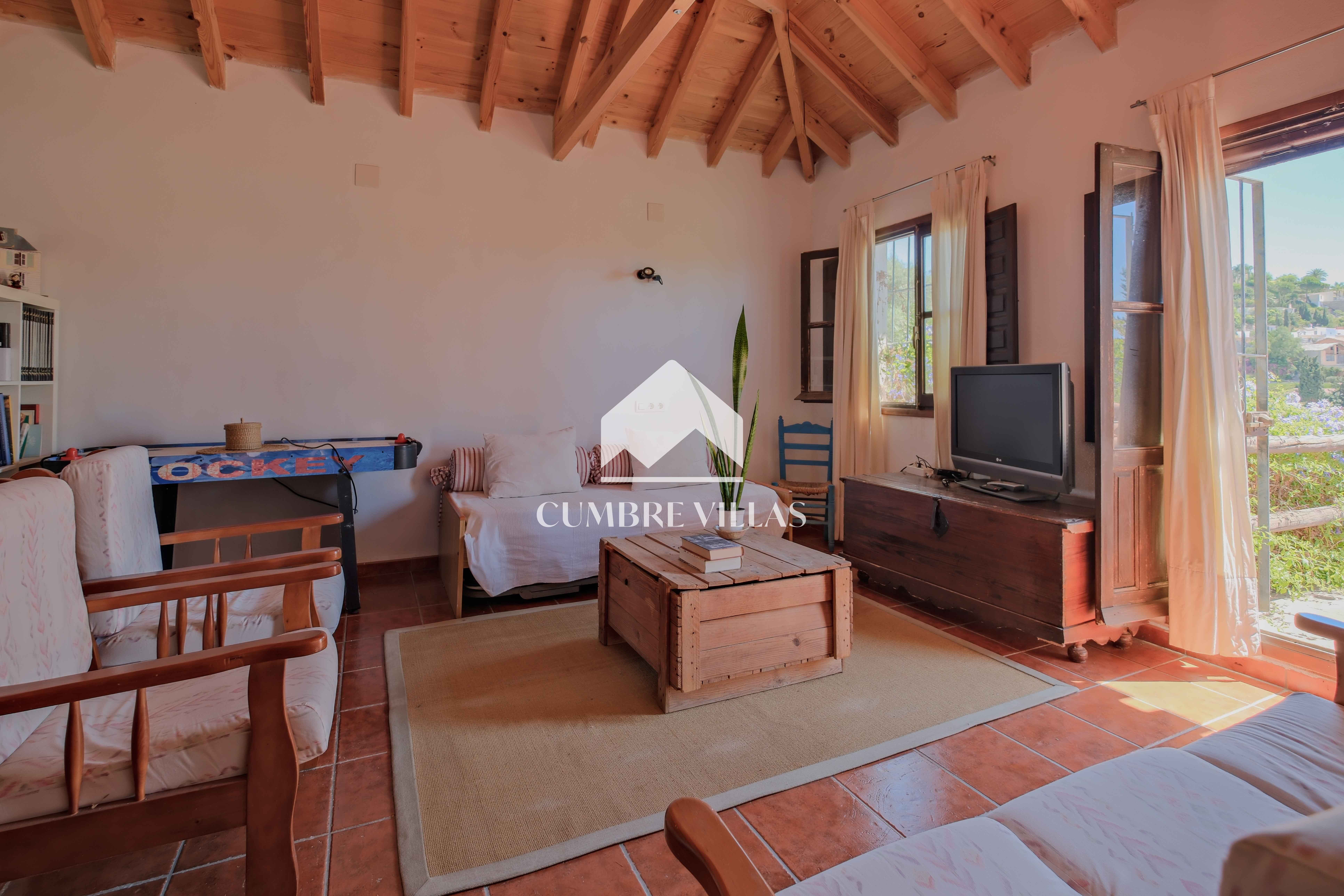 The wooden staircase leads to the upper floor, where, on the left, there is an impressive bedroom with high wooden ceilings, en-suite bathroom, and a terrace offering views of the sea, the garden and the plains. On the opposite side lies the fifth bedroom: a spacious open-plan room that currently serves as a lounge and office, with a terrace overlooking the entire estate, home to tropical fruit trees such as mango, avocado and others. There’s also a small storeroom on this floor.