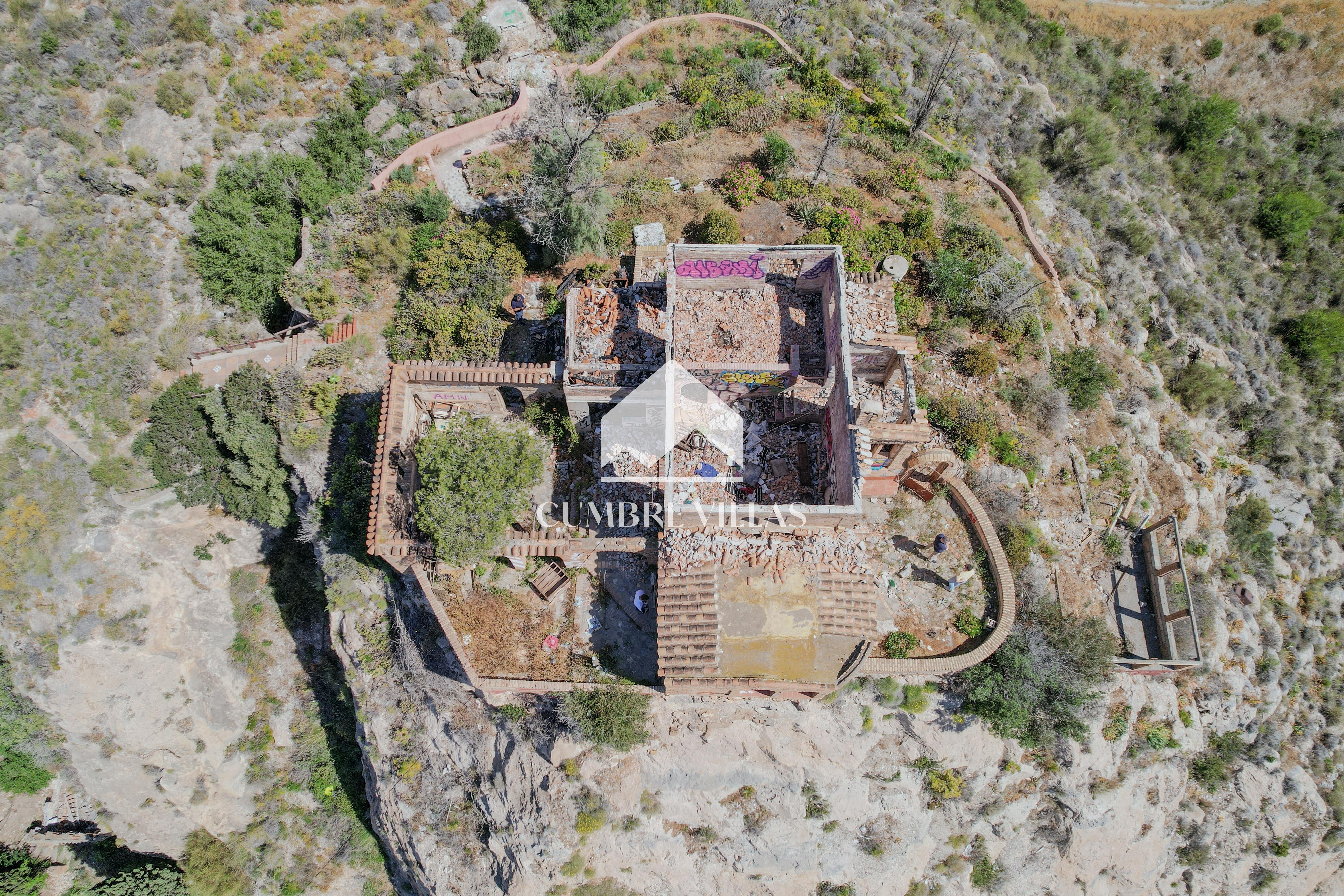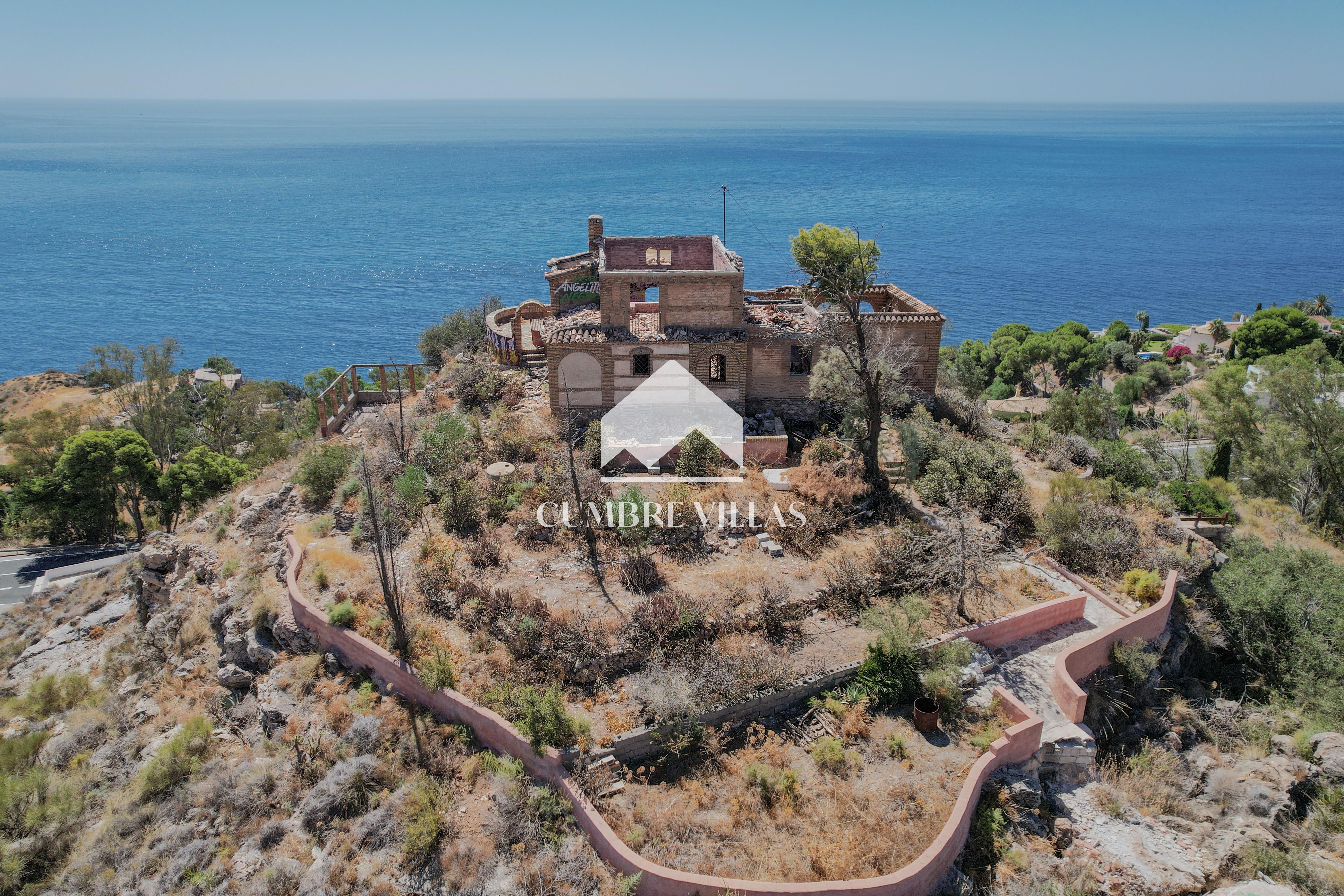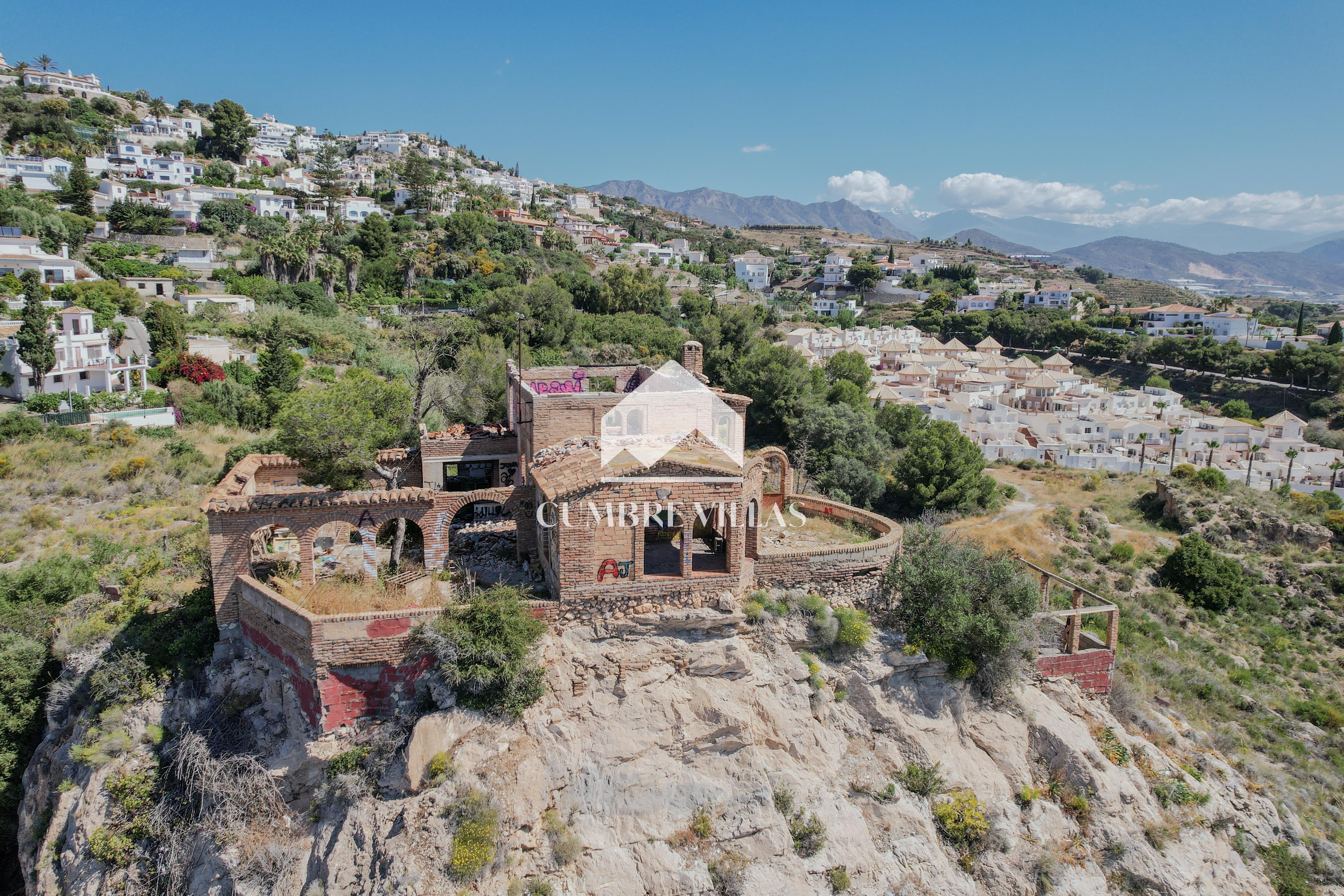 Originally purchased in the 1970s by a Dutch painter, the villa was redesigned in the enchanting style of the Alhambra, with decorative arches and Moorish-inspired details. Thanks to its commanding hilltop location, it quickly became a local landmark, easily recognizable from miles away. Sadly, in 2023 the villa suffered a fire, leaving the main walls intact but destroying the roof and much of the interior. While the structure requires a full architectural review and rebuilding, the opportunity to restore or reinvent it makes this a project with endless possibilities and large potential.