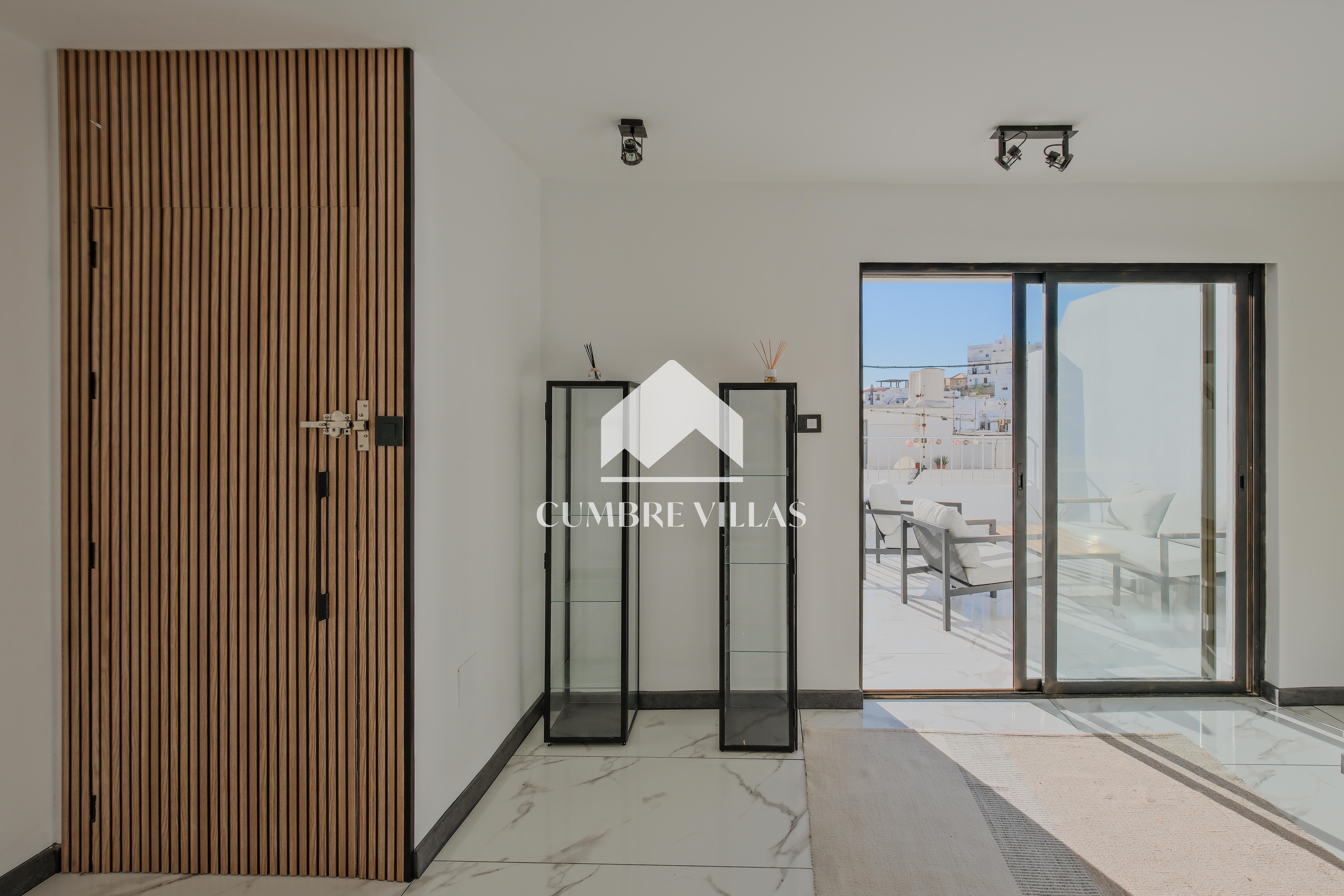 This renovated duplex penthouse for sale is ideally located in the town centre of Salobreña, offering a combination of modern comfort, outdoor living and beautiful panoramic views of the Mediterranean Sea, the town and the mountains as backdrop. Situated on the third floor of a traditional building without a lift, the property has been fully refurbished and is ready to move into.