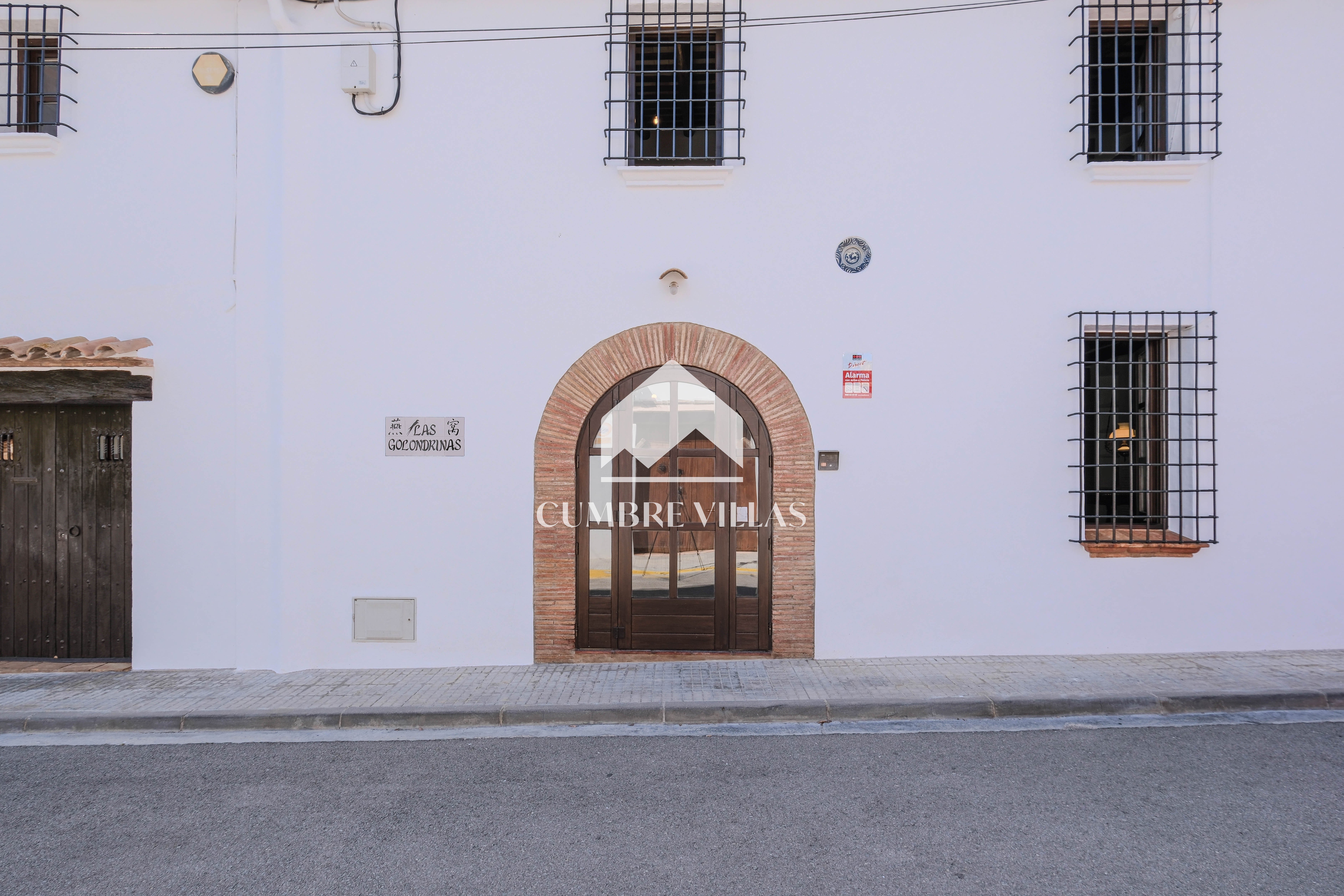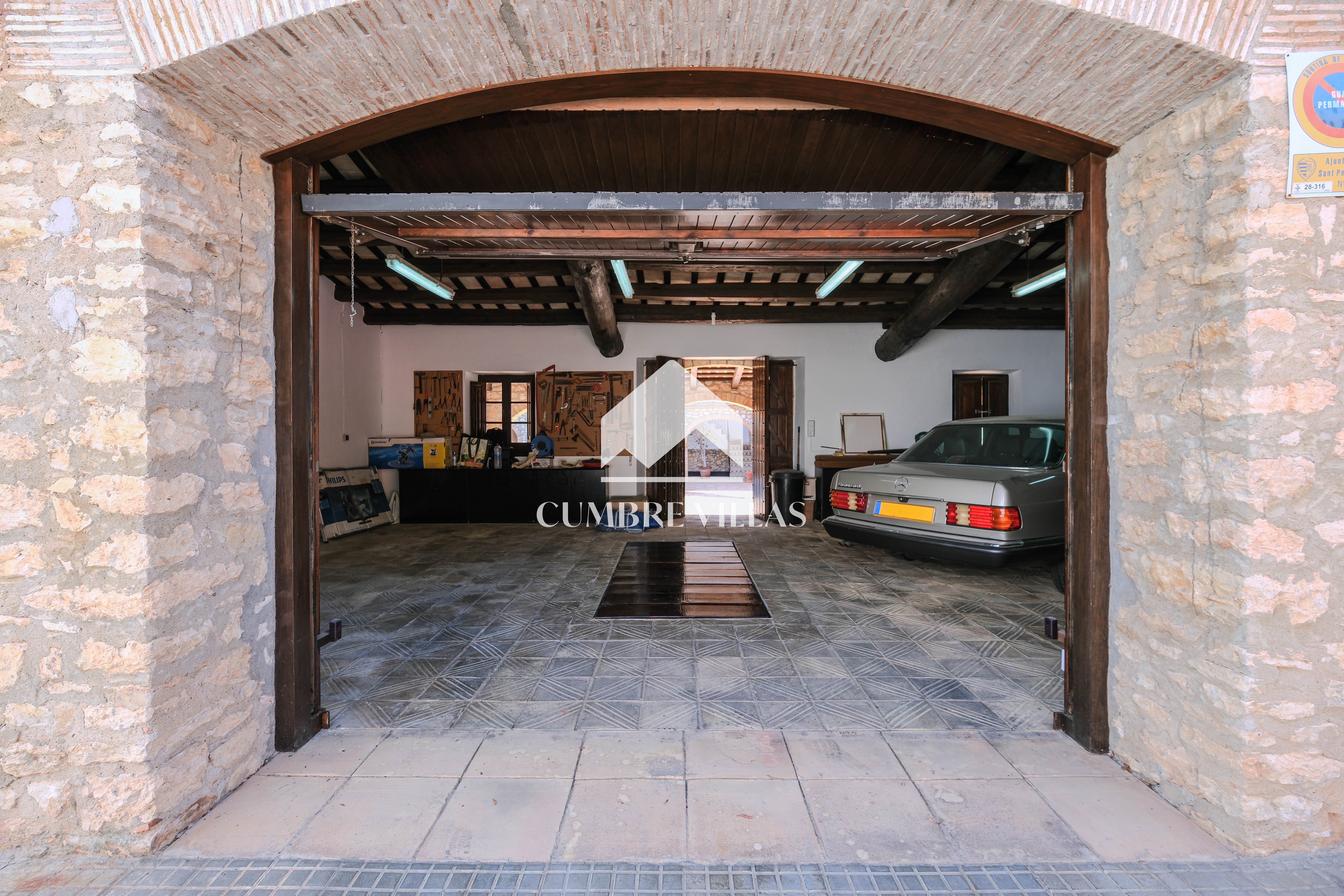The property has four entrances from the street: two leading to the main house, one to the garage and one to the guest house. The main house is accessed via the vestibule, with the staircase straight ahead leading upstairs. To the right is the front room, and to the left a transitional space with a stone oven that leads to the dining room, covered terrace and garage. The garage accommodates three cars, houses the Vaillant heating system and, as a unique feature, an old forge.