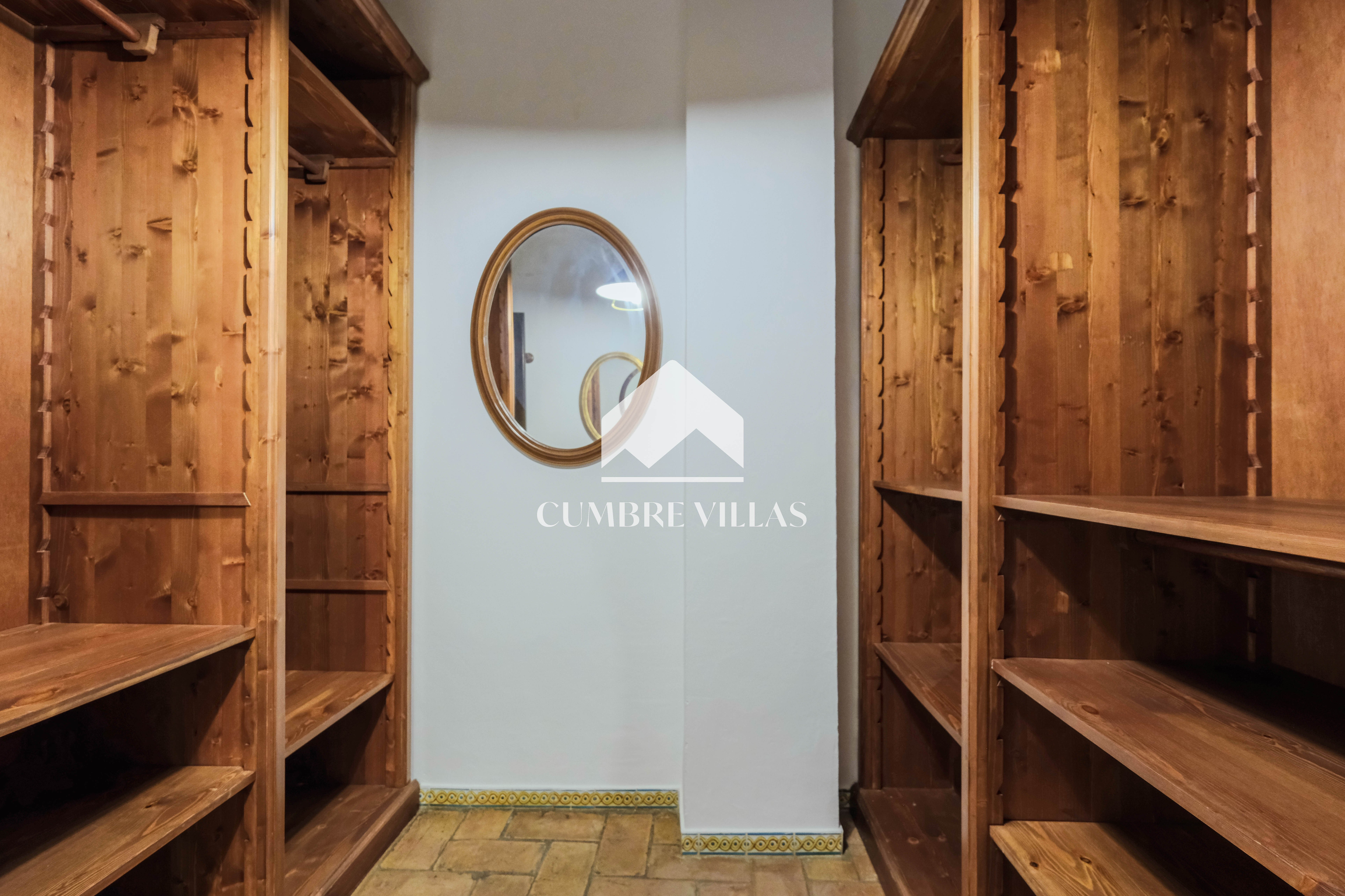 The staircase in the vestibule leads to the games and billiard room, which connects to a short hallway with built-in wardrobes, a bathroom and a staircase to the top floor with two bedrooms. From the games room you also reach a hall with the other staircase. On the right, there’s a linen room and, on the left, a bedroom, another bathroom and stairs to the laundry room with roof terrace on the upper floor. At the end of the hall is the main bedroom with walk-in wardrobe.
