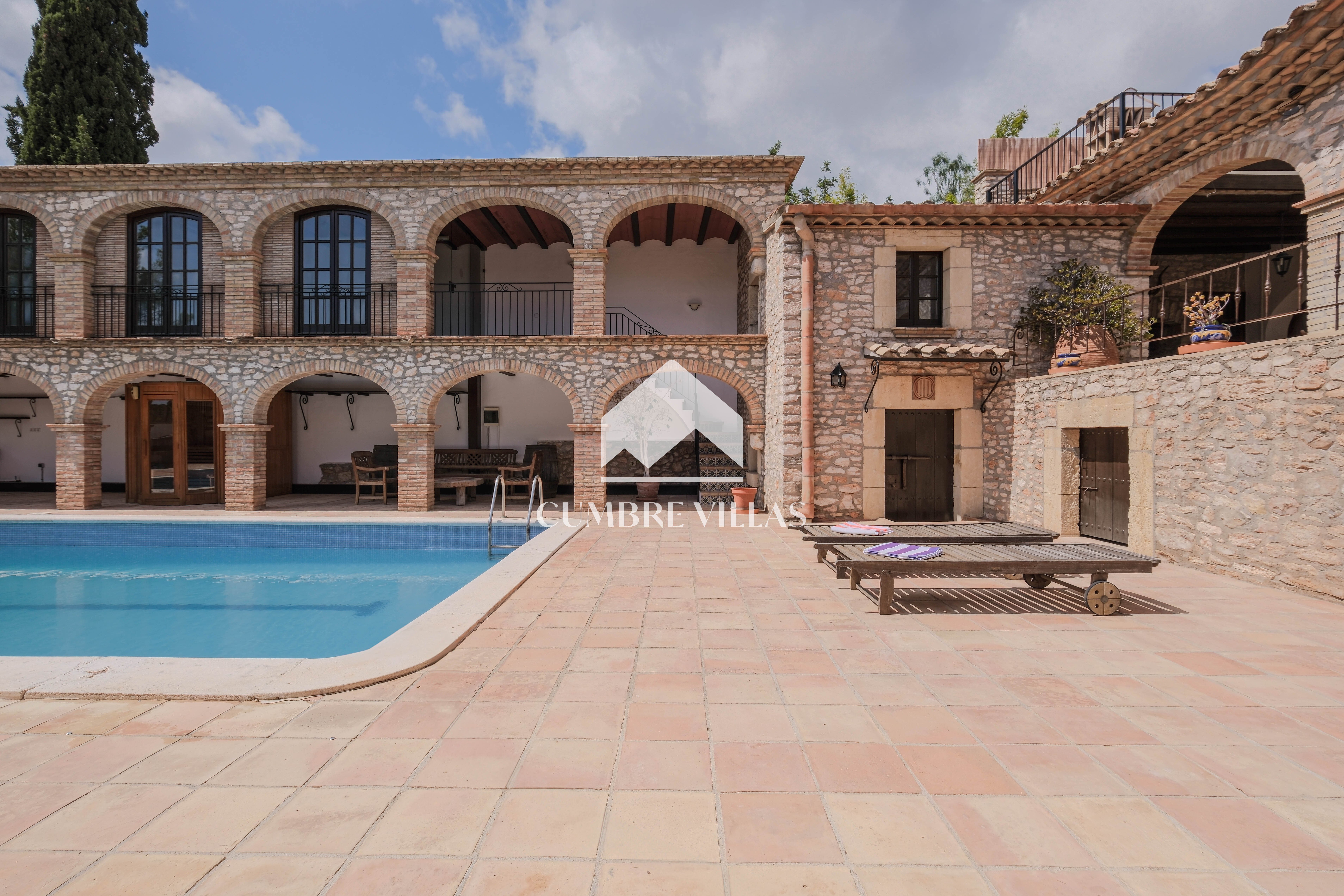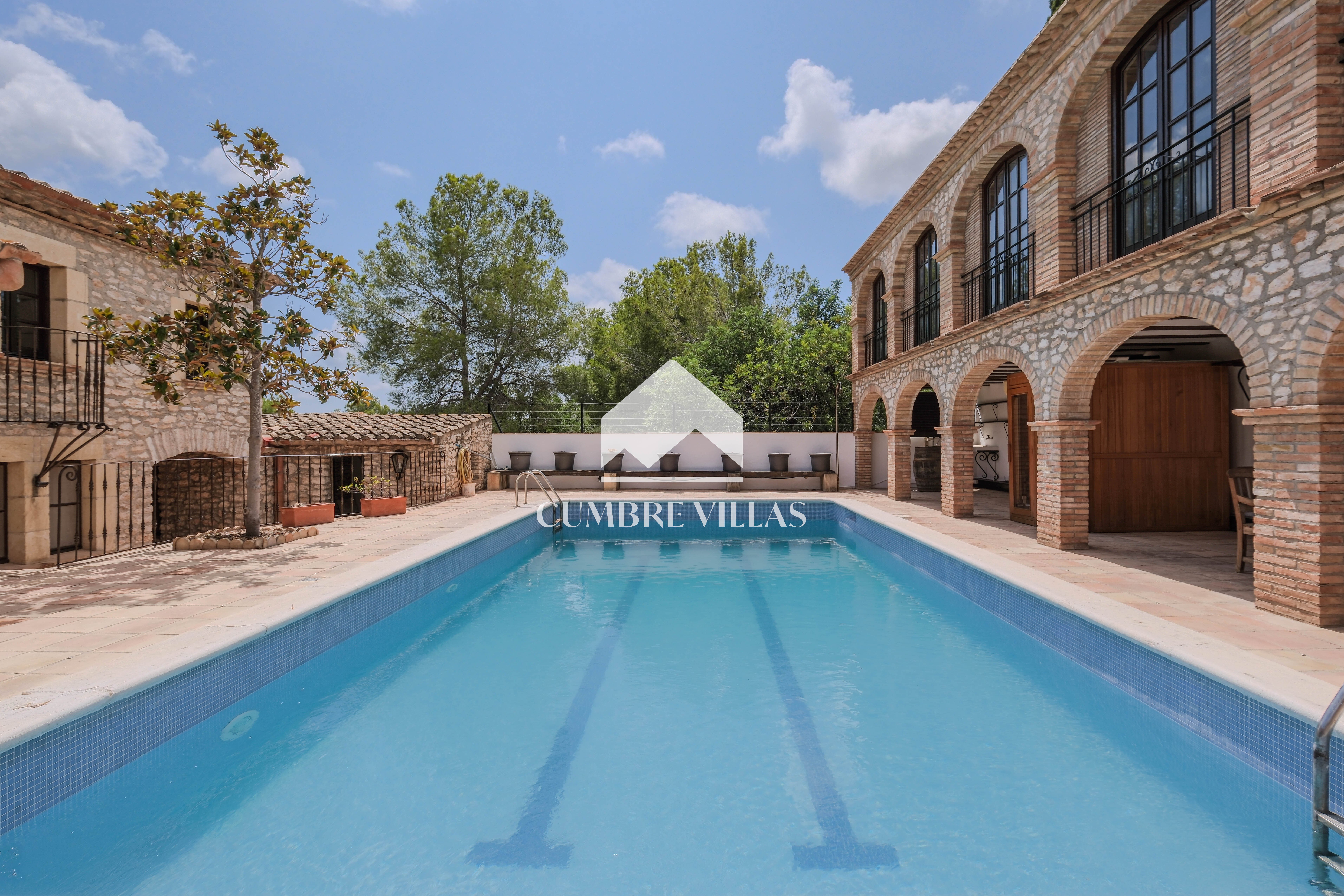Unique luxury villa in traditional Catalan style near Sitges with large pool, multiple terraces and guest house.