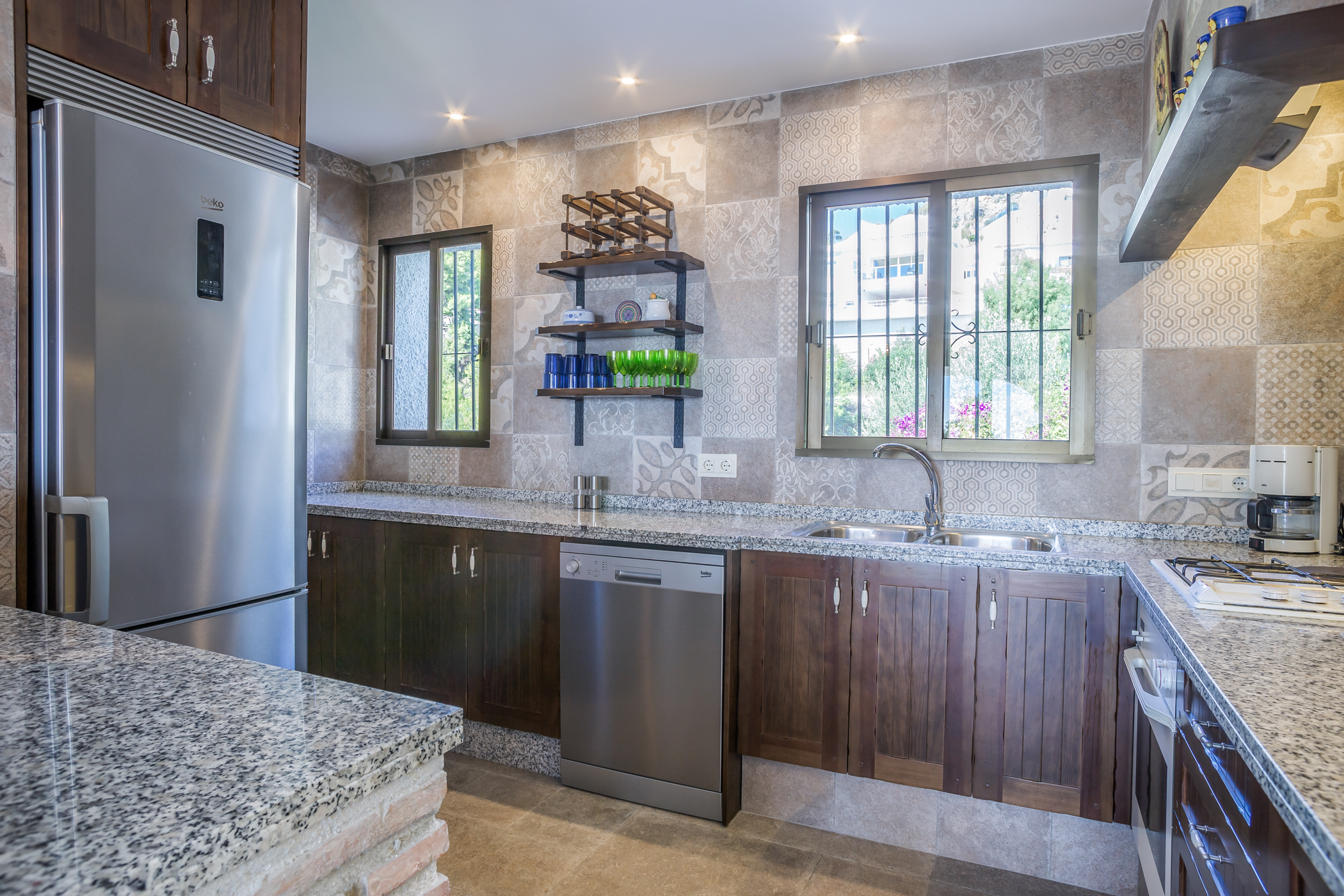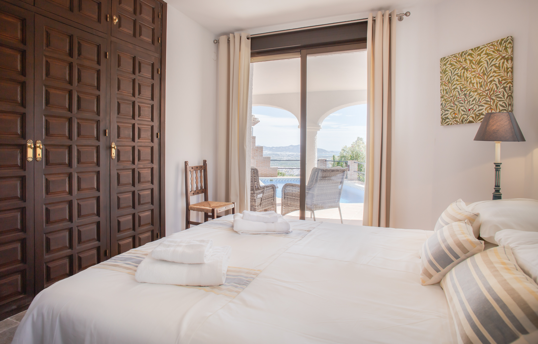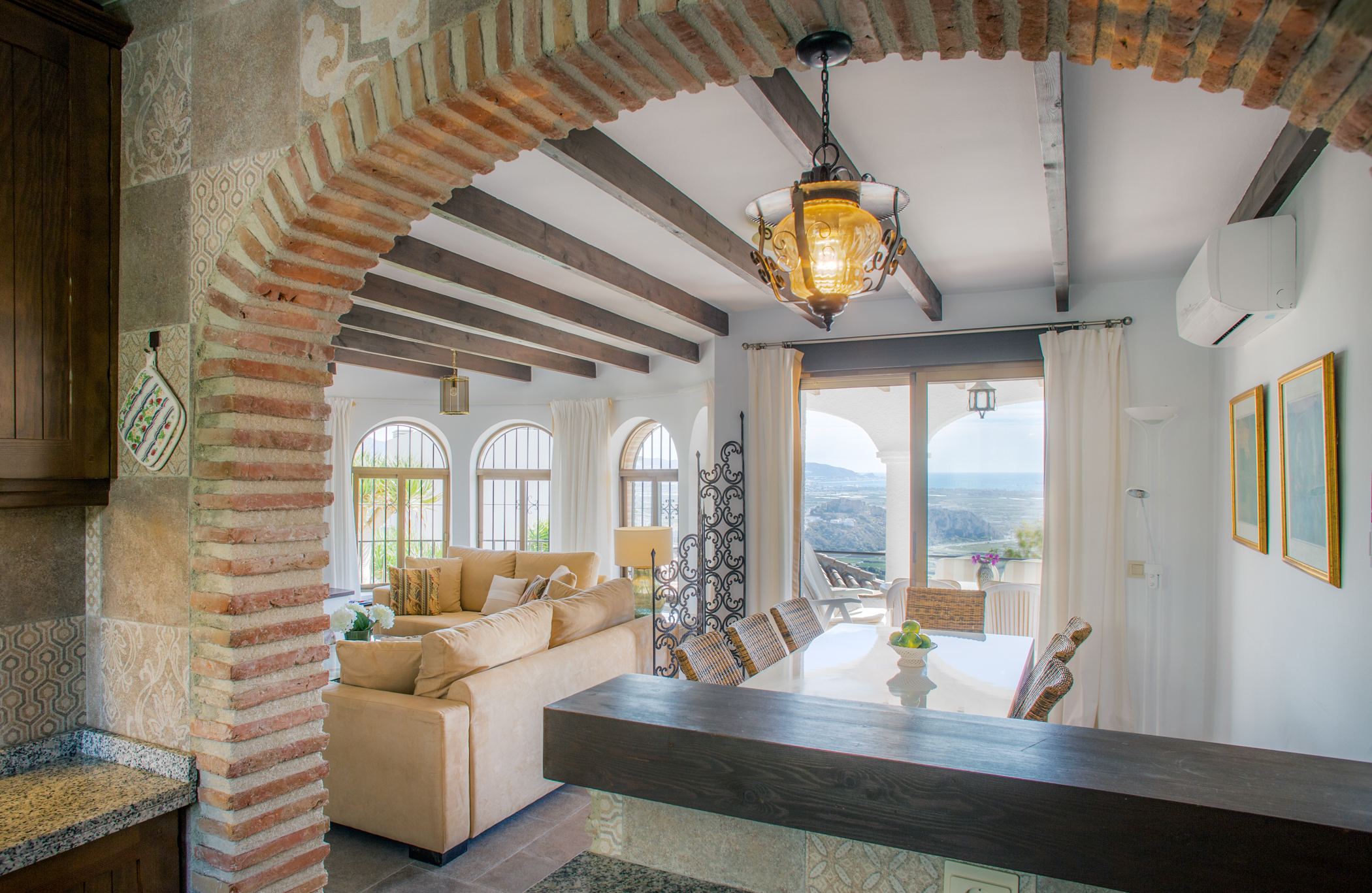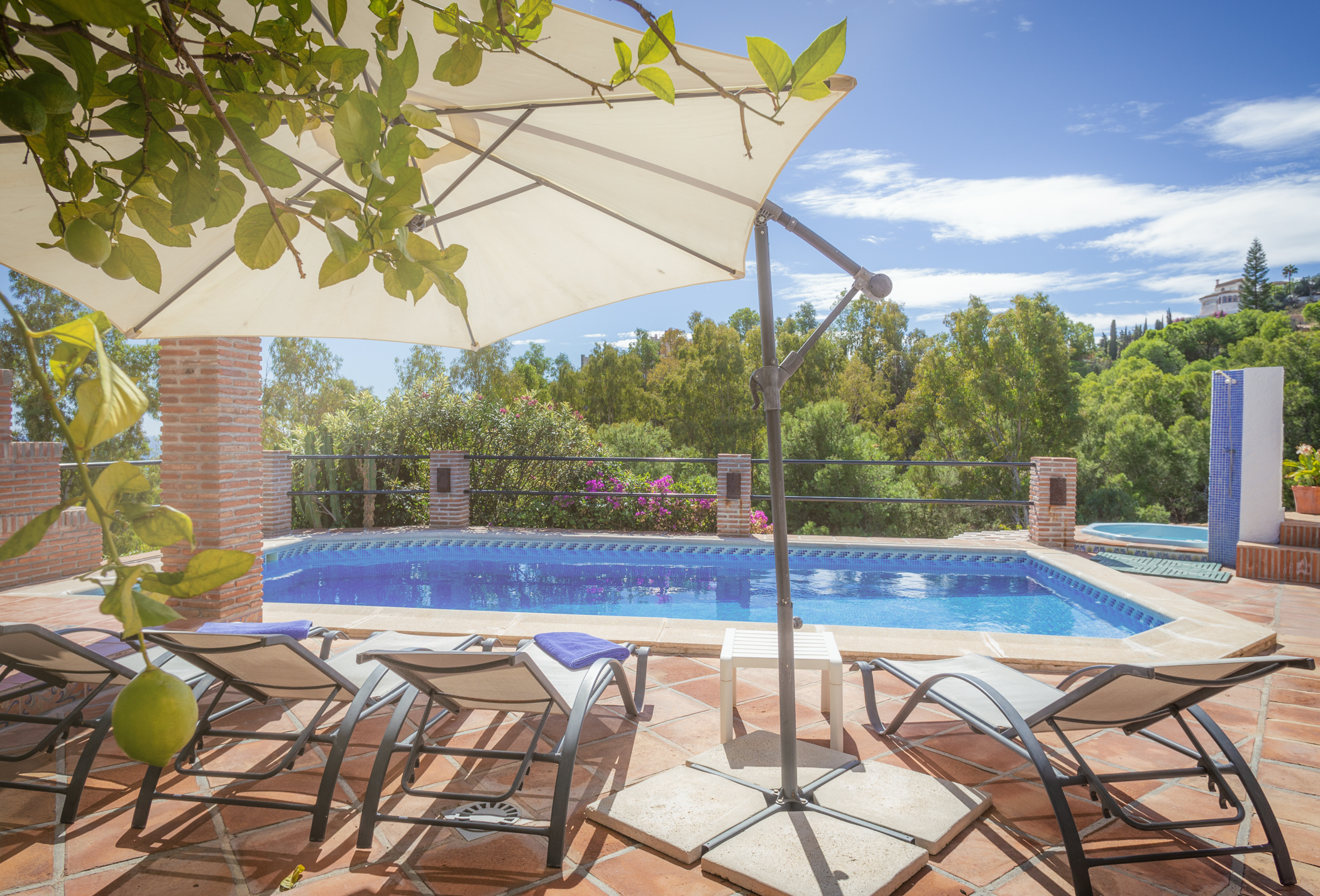 This unique, south facing villa with lovely design has been recently refurnished. It combines a contemporary and modern design with wood and stone elements. It offers fantastic sea views through its big windows to create a wonderful light and open atmosphere. From the moment you enter the villa, you will be awestruck by the stunning sea views that you can enjoy from inside and from the terrace. This villa invites you to unwind and have a relaxing holiday! This luxurious and spacious 4 bedroom villa blends in perfectly with its surroundings on the hillside community in which it is set. The villa overlooks the Mediterranean sea and the romantic landscape of the Costa Tropical. It is located on a quiet part of Monte Los Almendros. You also can enjoy these incredible views to the sea and the hillside from the pool. No doubt you will be enticed to spend hours relaxing in it! This house was originally designed to be a family home, so there are many extras. If you want luxurious and comfortable self catering accommodation, then Villa Cañada is for you. Tennis, beach & golf are located nearby. Furthermore you have easy access to Granada, Malaga & Almeria airport. Free access to the recreational area of the Monte de los Almendros (pools, lawn, tennis, football, tapas bar, small library and more)