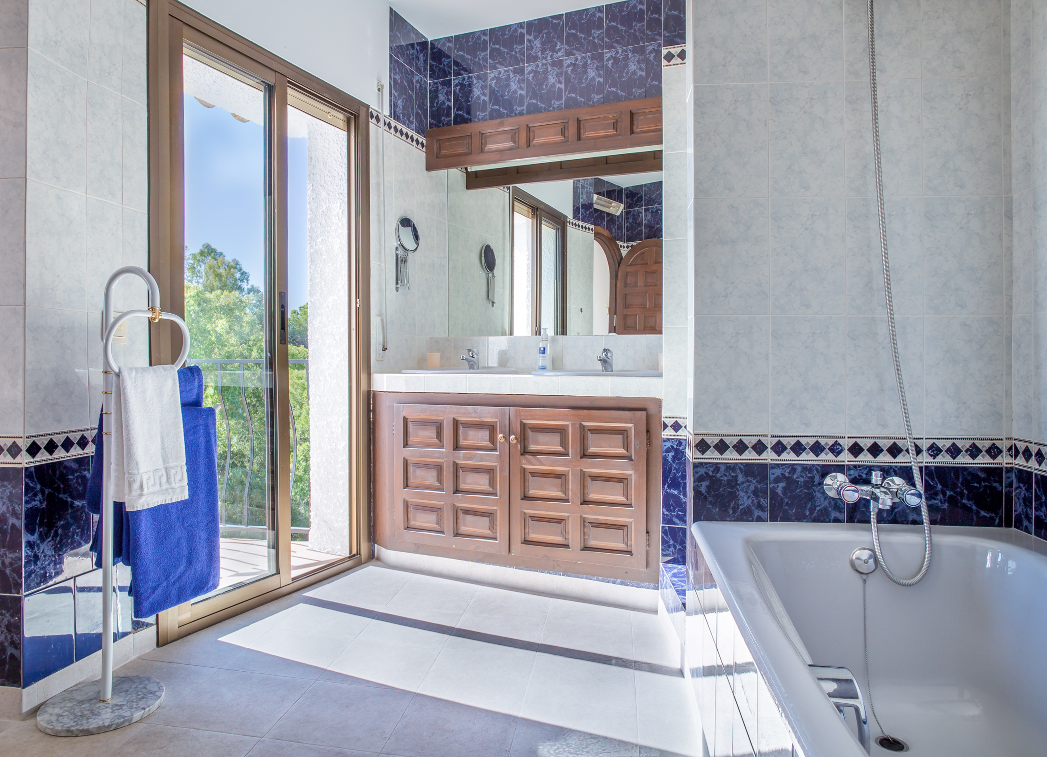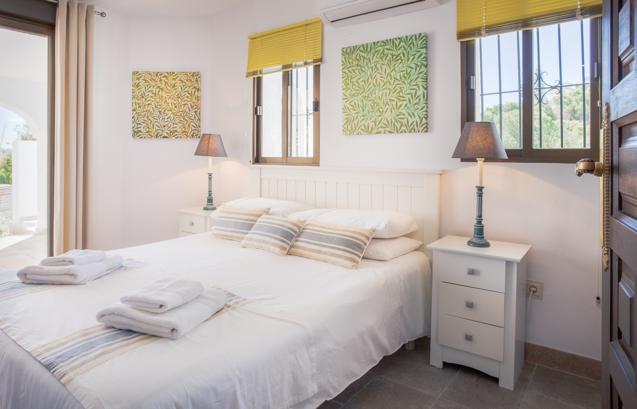 Bedroom 2: One double bed, Air conditioning, Curtains & Shutters, Ensuite bathroom with bath tub, Sea view, Access to terrace