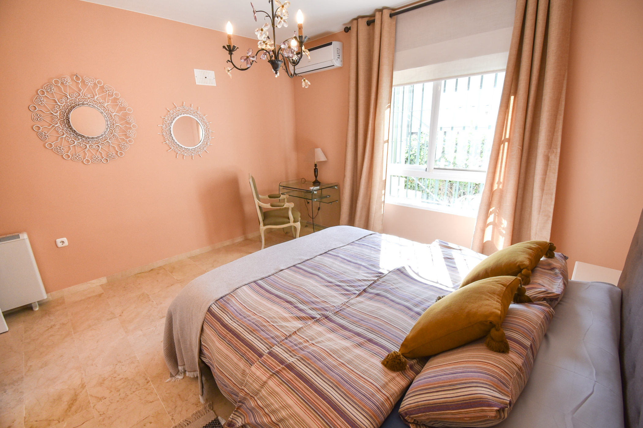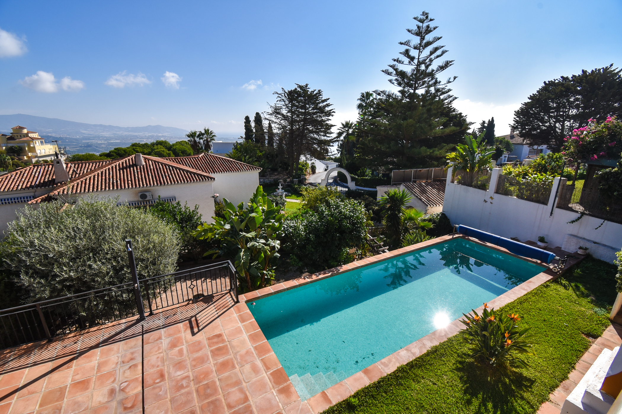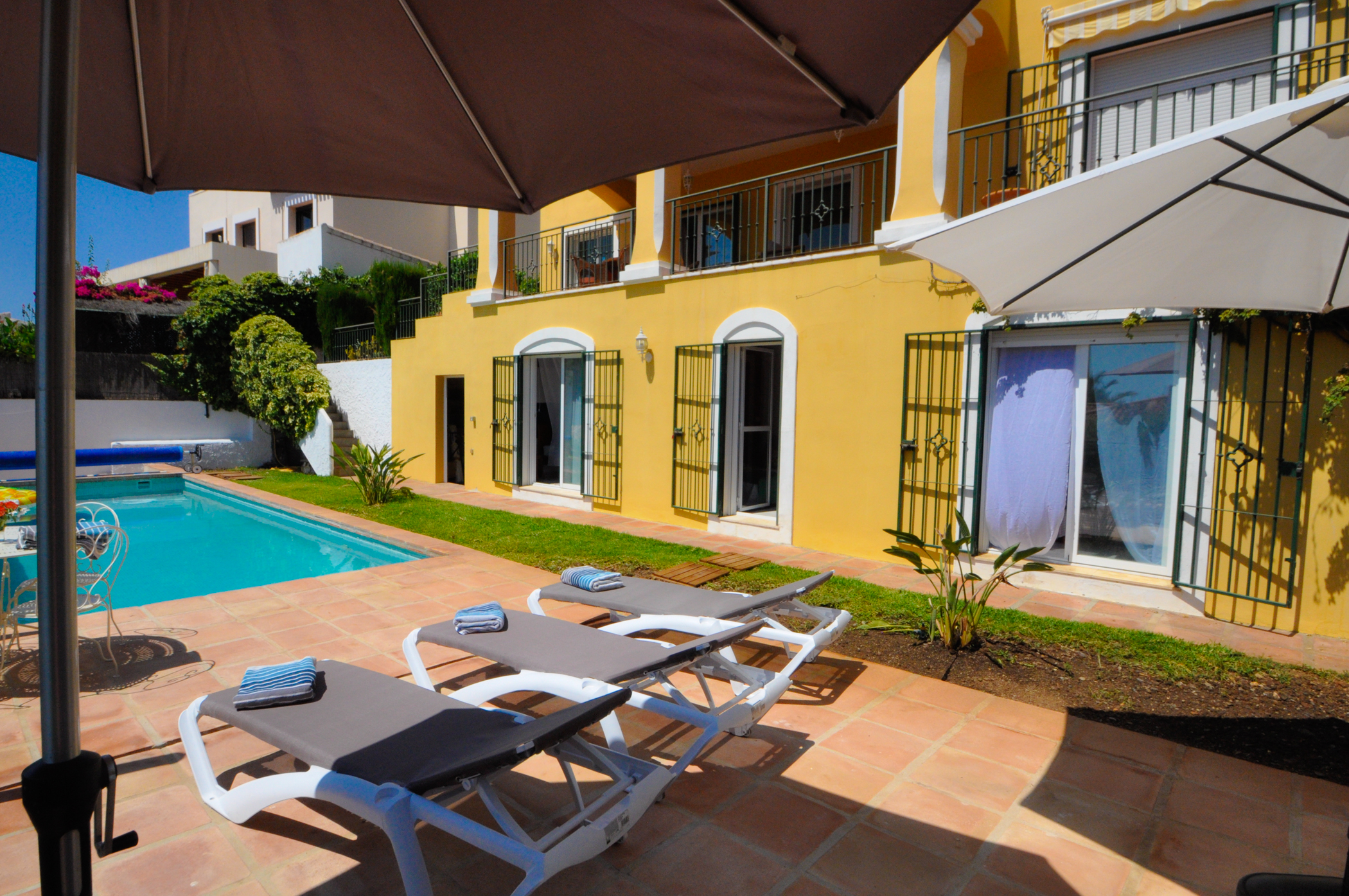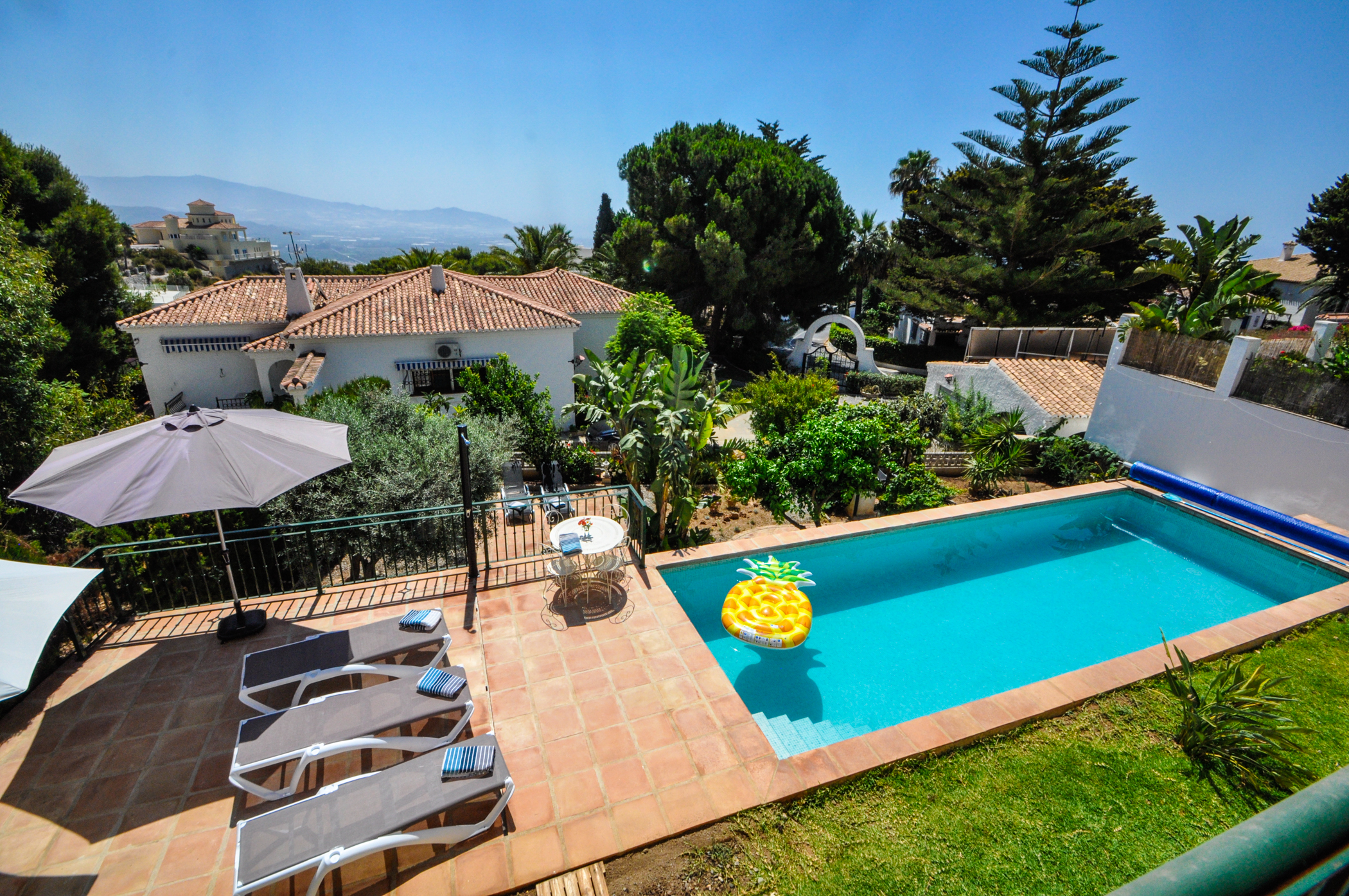 Charming villa with 4 bedrooms, 3 bathrooms and own private pool that can be heated. Located in the exclusive neighbourhood “Monte de los Almendros” in Salobreña, with stunning view over the sea. Only 8 - 10 minutes drive t0 the beach of Salobreña. The kitchen is fully equipped. The interior is homelike with comfortable furniture. Enjoy the warm Mediterranean Flair in this colourful holiday home. All the bedrooms have air conditioning and the wifi is for free.