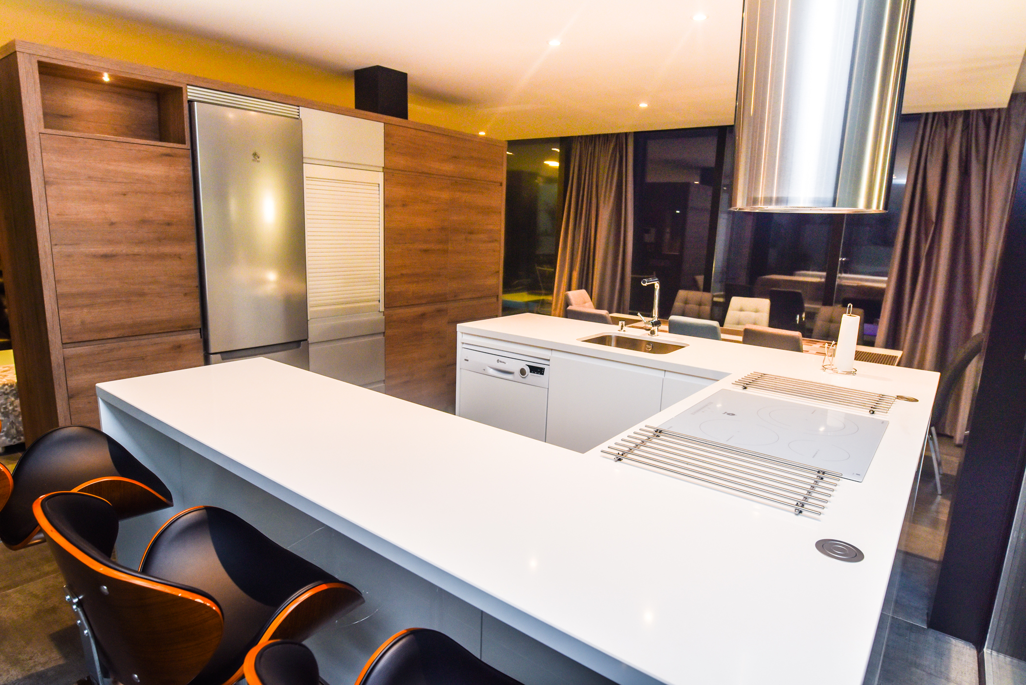 - Fridge, freezer, oven, ceramic hob (induction), microwave, dishwasher