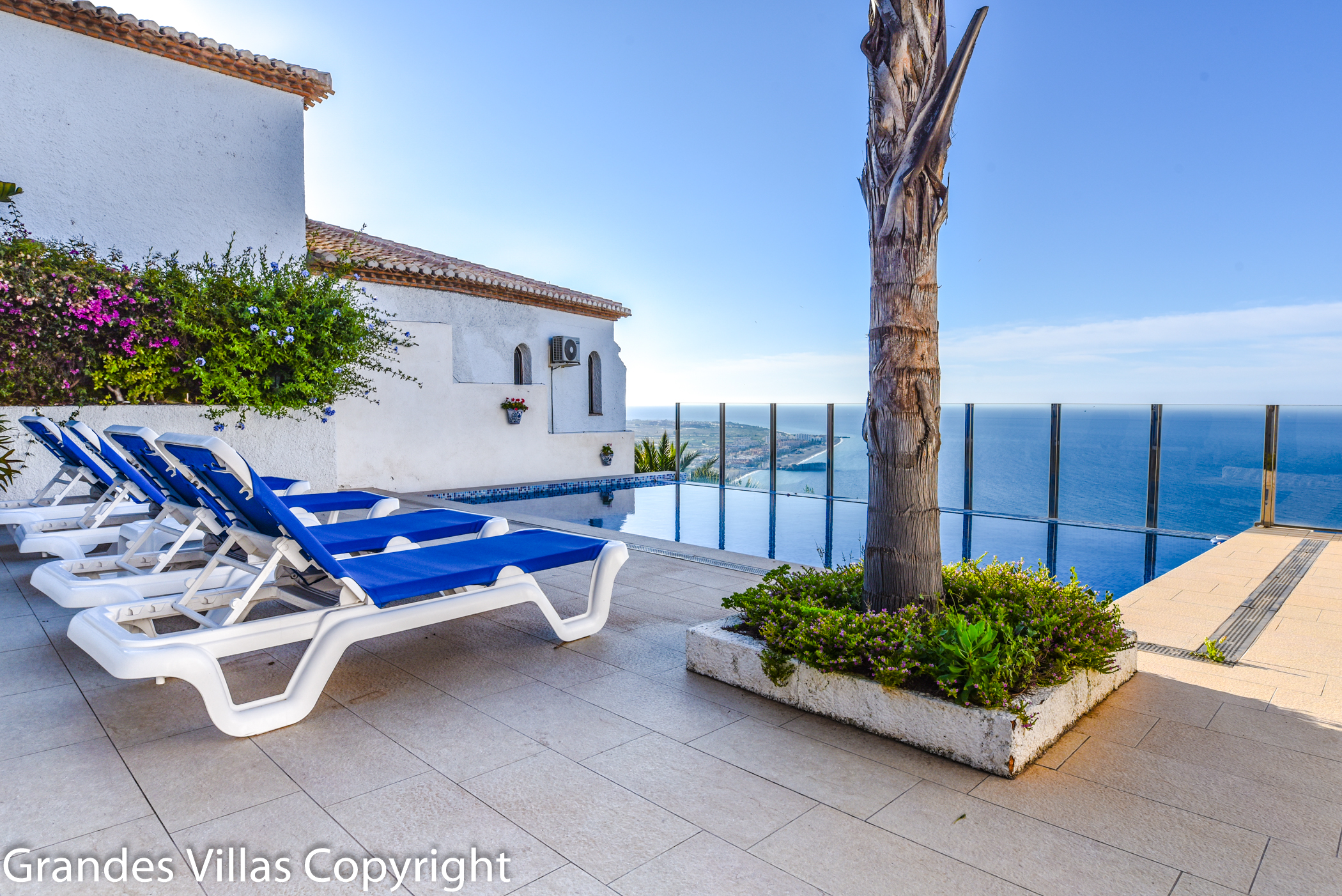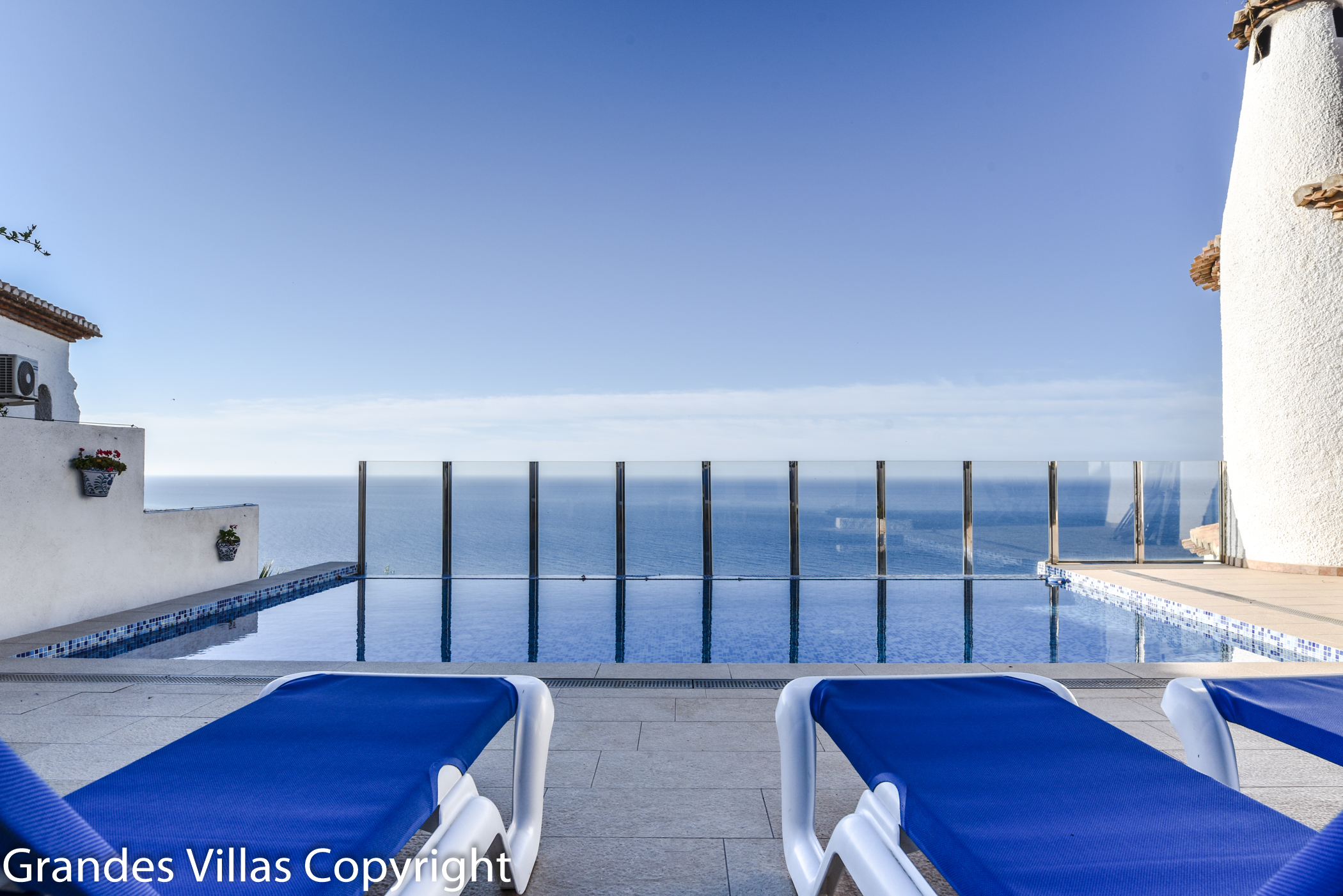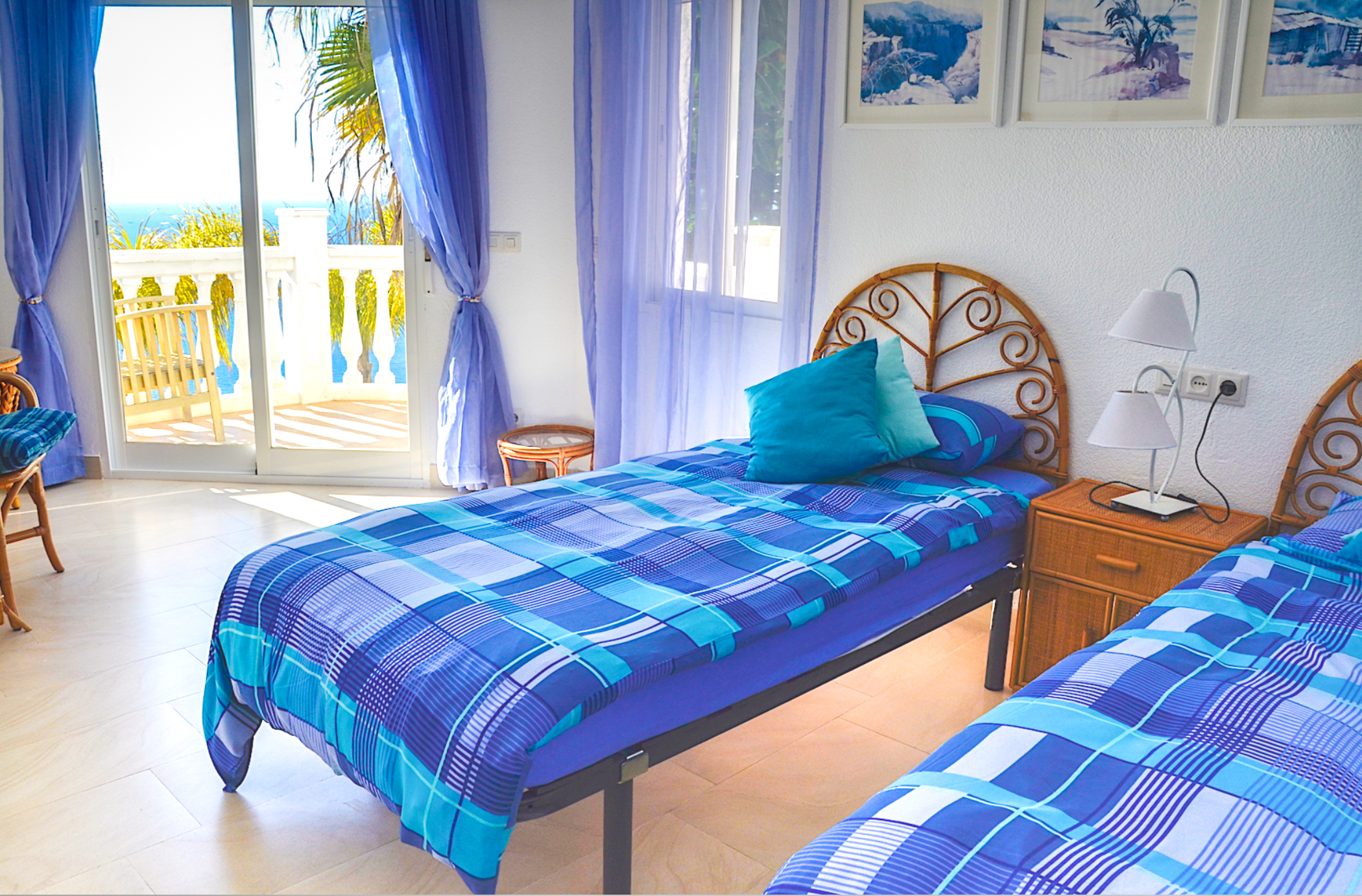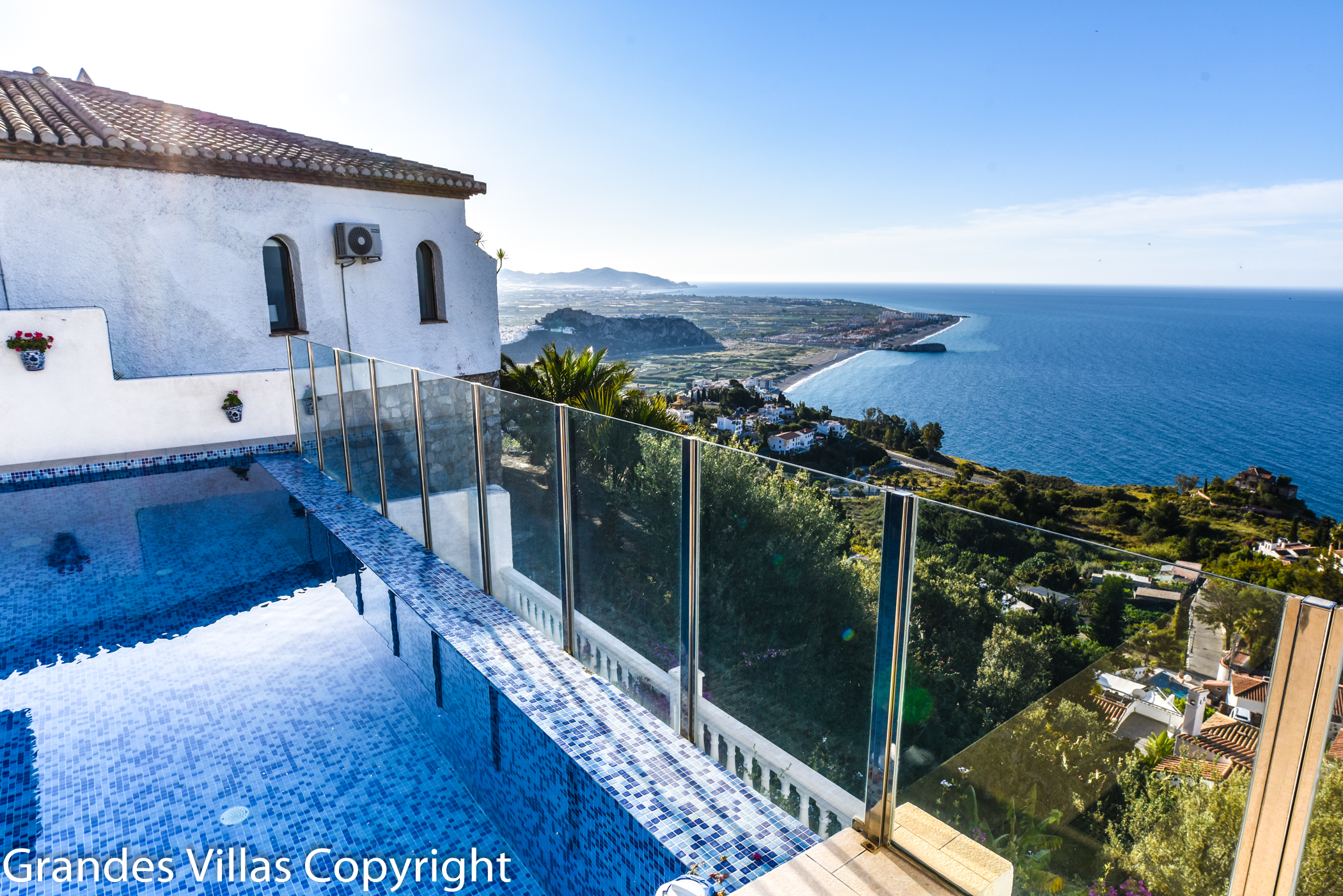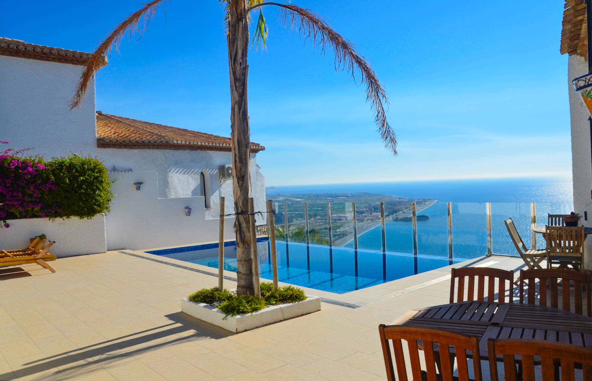 This villa for rent with pool is located in the south of Spain, in the charming coastal town of Salobrena. Salobrenais a small, seaside town that is famous for its Moorish castle which is surrounded by white washed houses and green plains. It is really picturesque and the views to the sea and the snow covered mountains are awe inspiring. This villa for rent with pool is near the beach and has everything you could possibly need to enjoy a perfect holiday in Salobrena. This villa for rent with pool is south facing therefore it enjoys the sun all day long. Upon entering this precious villa for rent with pool, you will be amazed by the spectacular sea views and the light. Just being in the spacious, open plan living room, dining room and kitchen area is a treat. In fact, the villa has large windows from which you will be able to enjoy the views to Salobrena, the mountains and of course the sea and the cobalt blue skies that are so invigorating! This villa for rent with pool has a fully equipped kitchen, including a dishwasher, oven and washing machine. There are 2 good sized bedrooms, each with its own en suite bathroom and terrace. The bedrooms have hot and cold air conditioning to ensure a perfect night’s sleep. All of the bedrooms have views to the sea and Salobrena. With 2 supplemental beds, it is possible to sleep up to 5 people as there is a single bed between the two bedrooms. We look forward to welcoming you to Salobrena where the sun shines 320 days a year.