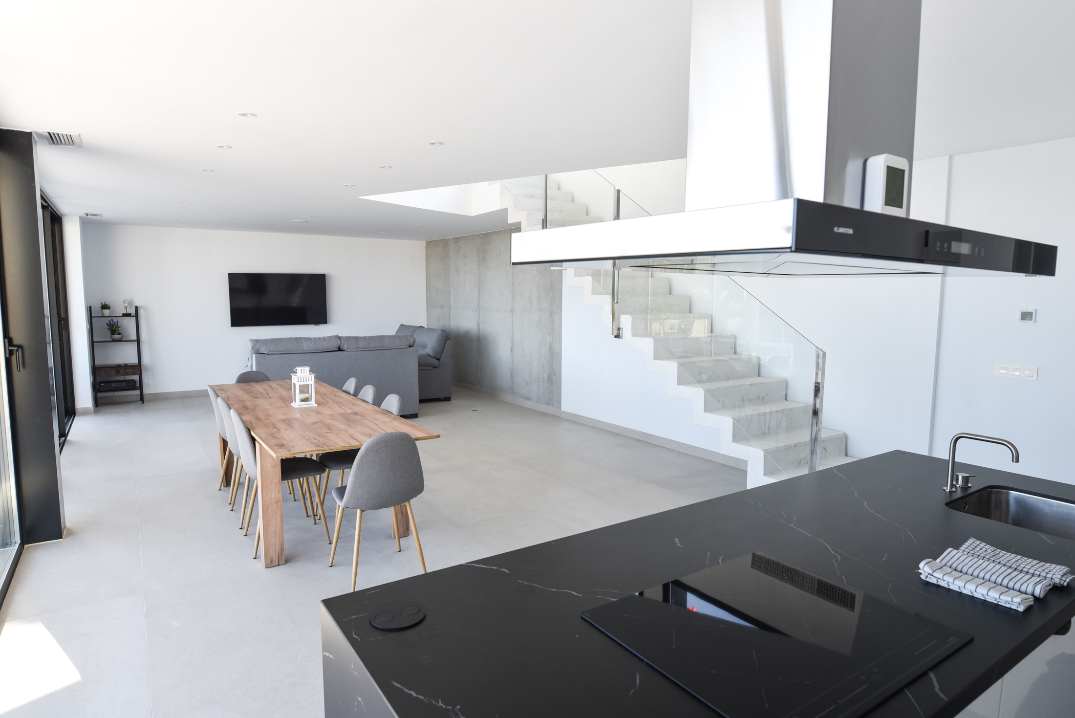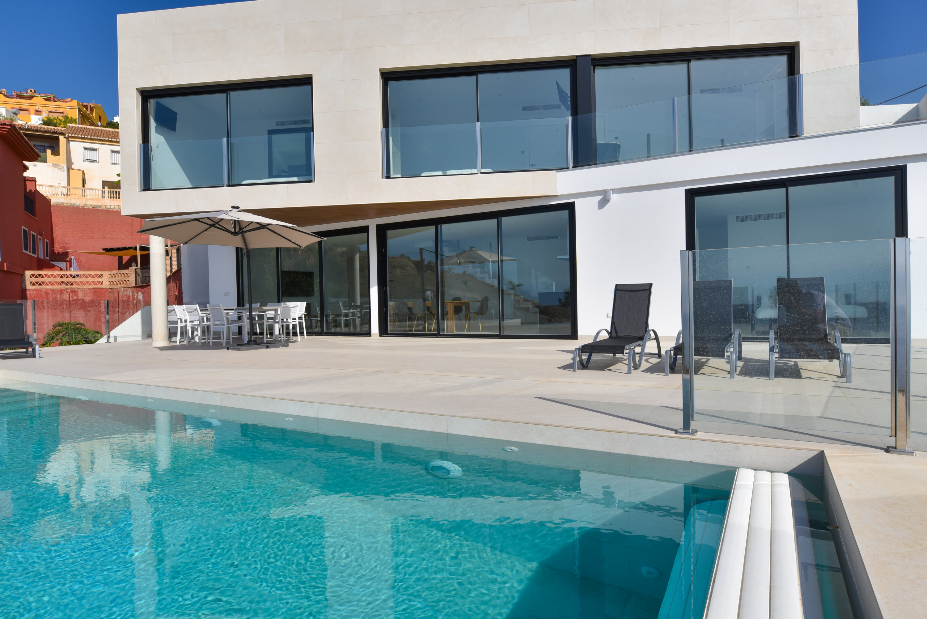 This amazing villa has many extra touches and details, your comfort and enjoyment is guaranteed. The home automation system inside gives you easy access to all the electrical equipment in the house from the screen next to the entrance door; so you can control all the blinds, interior lights, exterior lights, etc... The whole house has air conditioning and heat pump installation, which allows the temperature to be controlled independently in each room. There is also a washing machine.