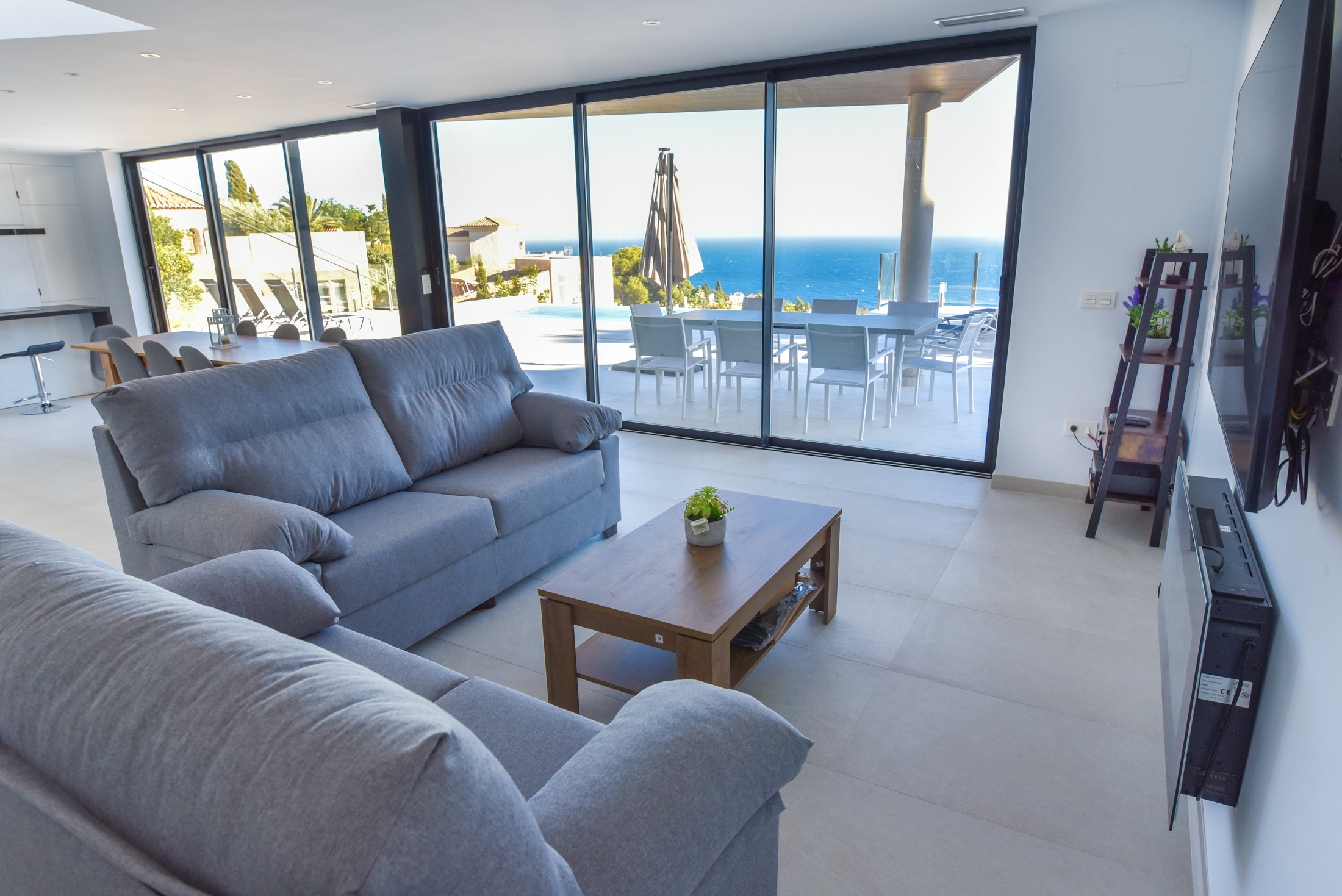 Villa Atalaya combines contemporary and modern design. Marble and light elements combined with zen colours and spacious views, thanks to fully glazed walls, create a wonderful light and open space feeling. From the moment you enter the house, the breathtaking sea views you can enjoy from every window and terrace will leave you speechless. Villa L'Atalaya invites you to unwind and enjoy a relaxing holiday.