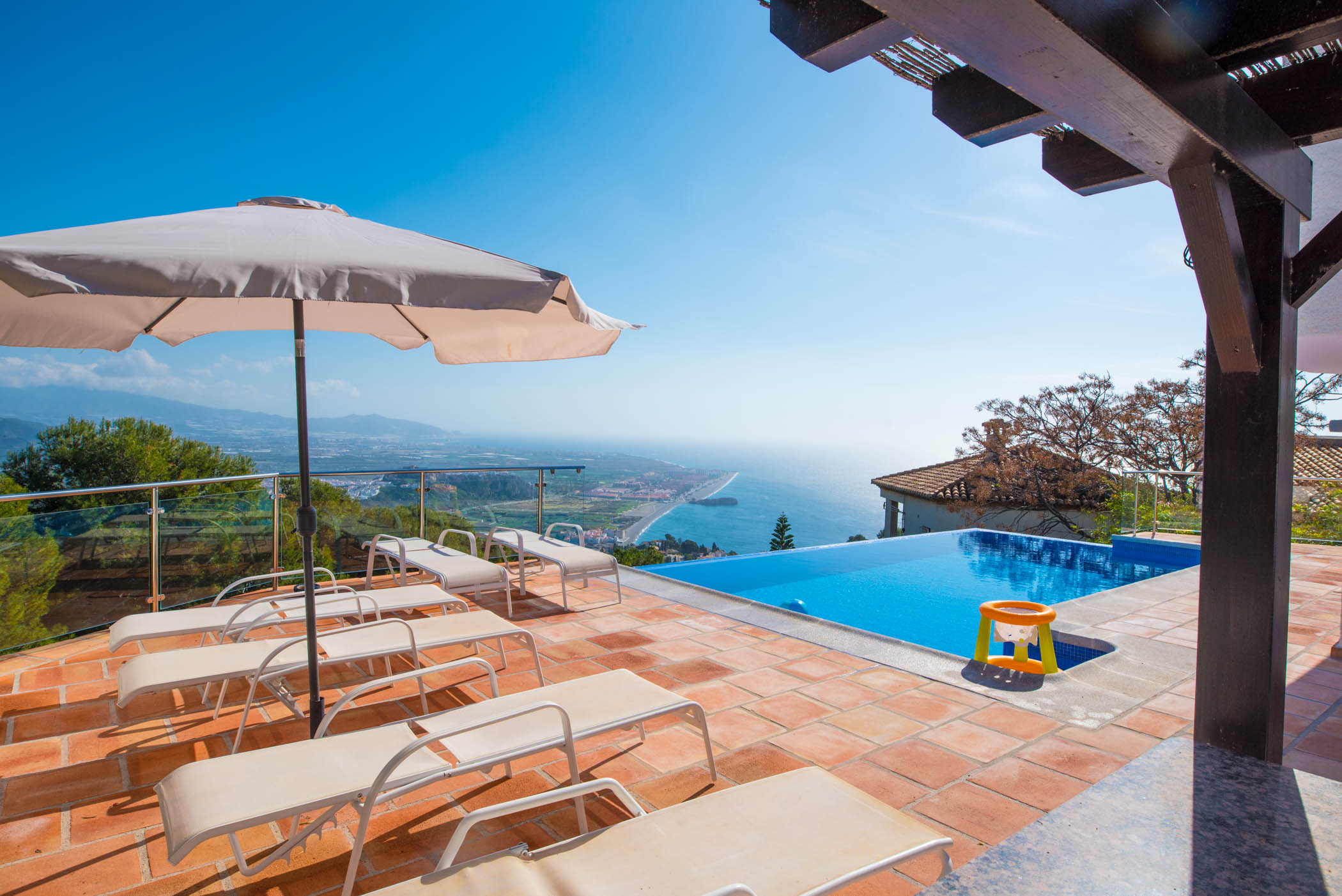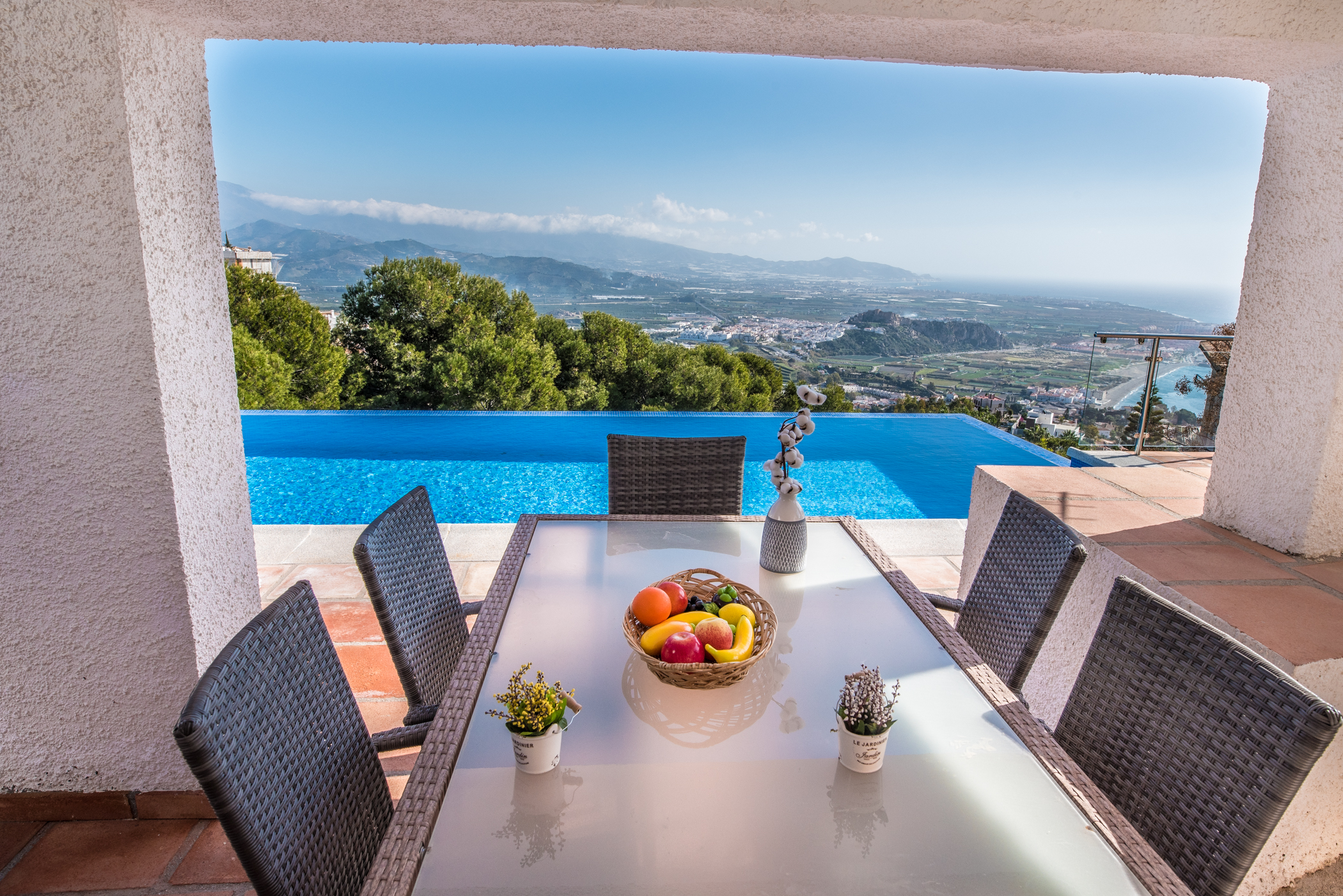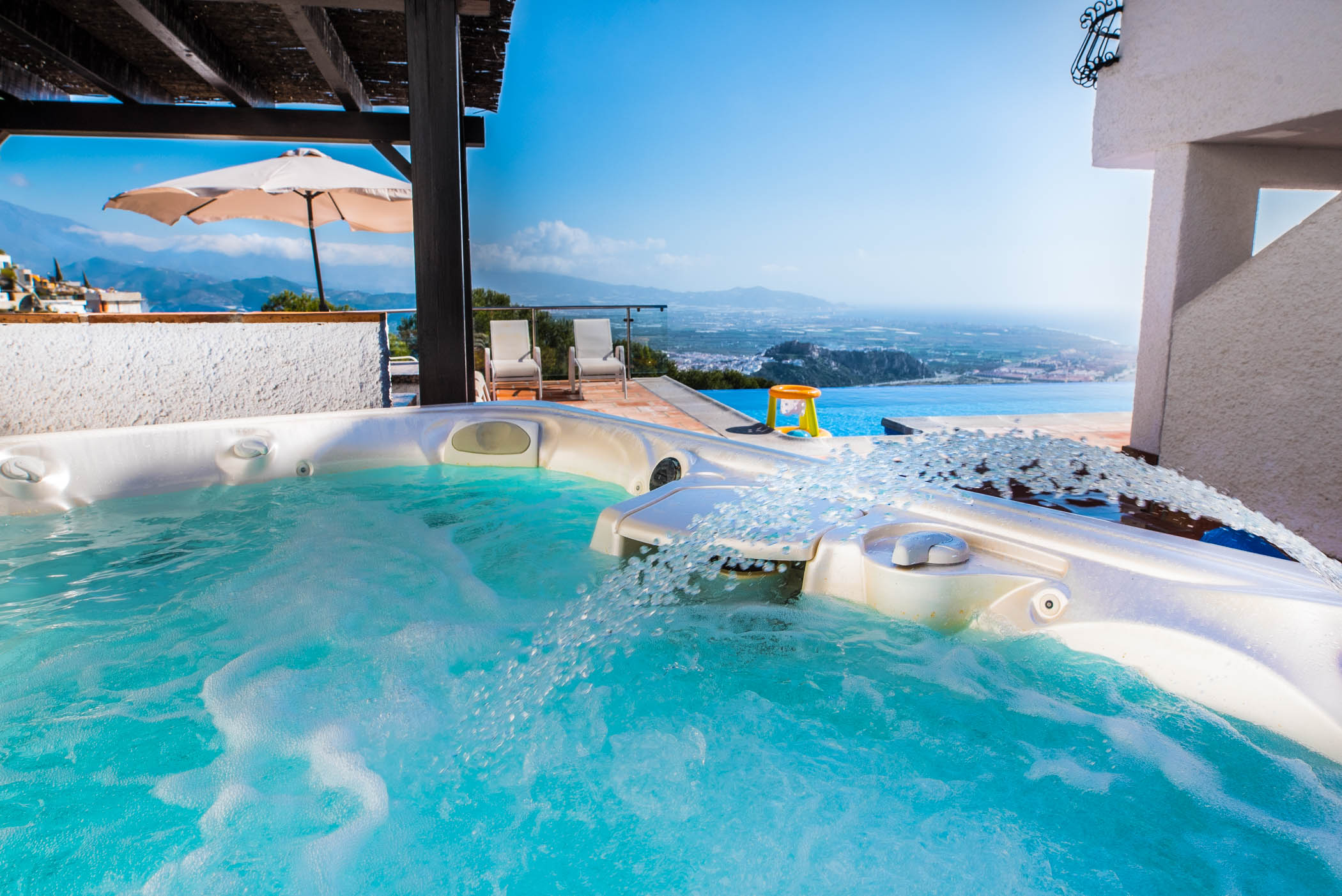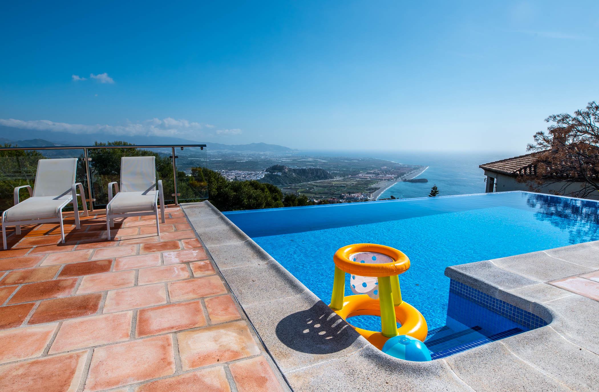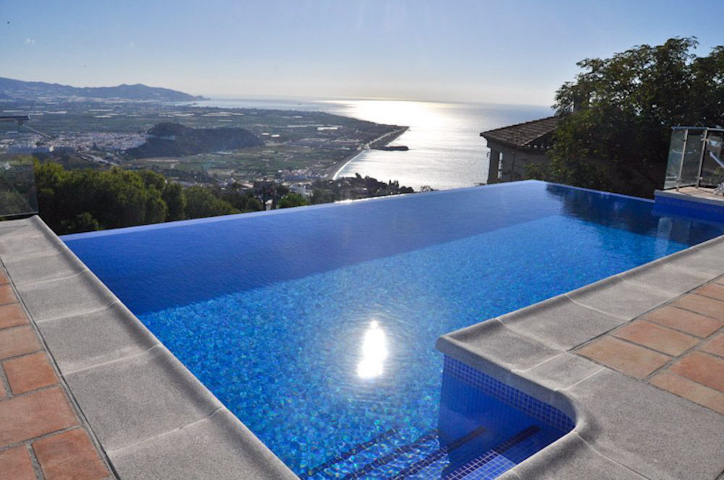 C’est l’une des parties les plus importantes de cette magnifique maison, elle est composée d’une splendide terrasse où se trouve la piscine à débordement chauffée de 8 x 4 m de profondeur. 1,40 / 1,60, le sauna nordique, le jacuzzi, le baby-foot et le splendide gril couvert avec comptoir avec l’évier, le réfrigérateur … De n’importe où dans cet aire, vous pouvez toujours apprécier des magnifiques vues sur la Costa Tropical, sa région et le merveilleux soleil d’Andalousie et les températures agréables de la Costa Tropical (Grenade).