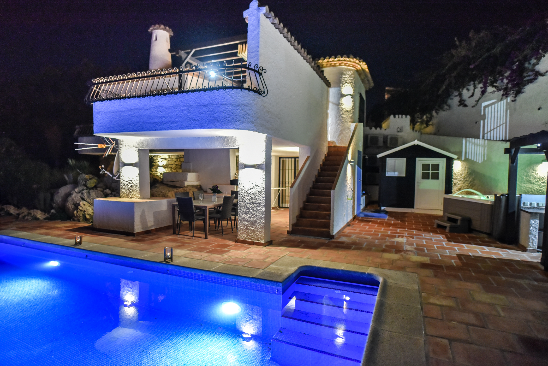 Cette maison / villa / villa à louer avec piscine chauffée, est orientée au sud ce qui nous donne du soleil et de la lumière toute la journée. Voir le lever du soleil de cette spectaculaire maison / villa / villa à louer avec piscine chauffée, sauna, jacuzzi est un privilège. Les vues de la mer Méditerranée sont spectaculaires. De cette maison nous avons une vue fantastique sur la côte et ses champs verts. Vous pouvez voir les plages de Salobrena avec une roche emblématique dans la mer, Motril, Nueva Torre et d’autres développements tels que Playa Grenade où le parcours de golf Los Moriscos avec 18 trous. Cette même vue pendant la nuit est géniale! Voir tout illuminé. Les jours de pleine lune voir sa lueur réfléchie sur la mer est une image impossible à oublier.