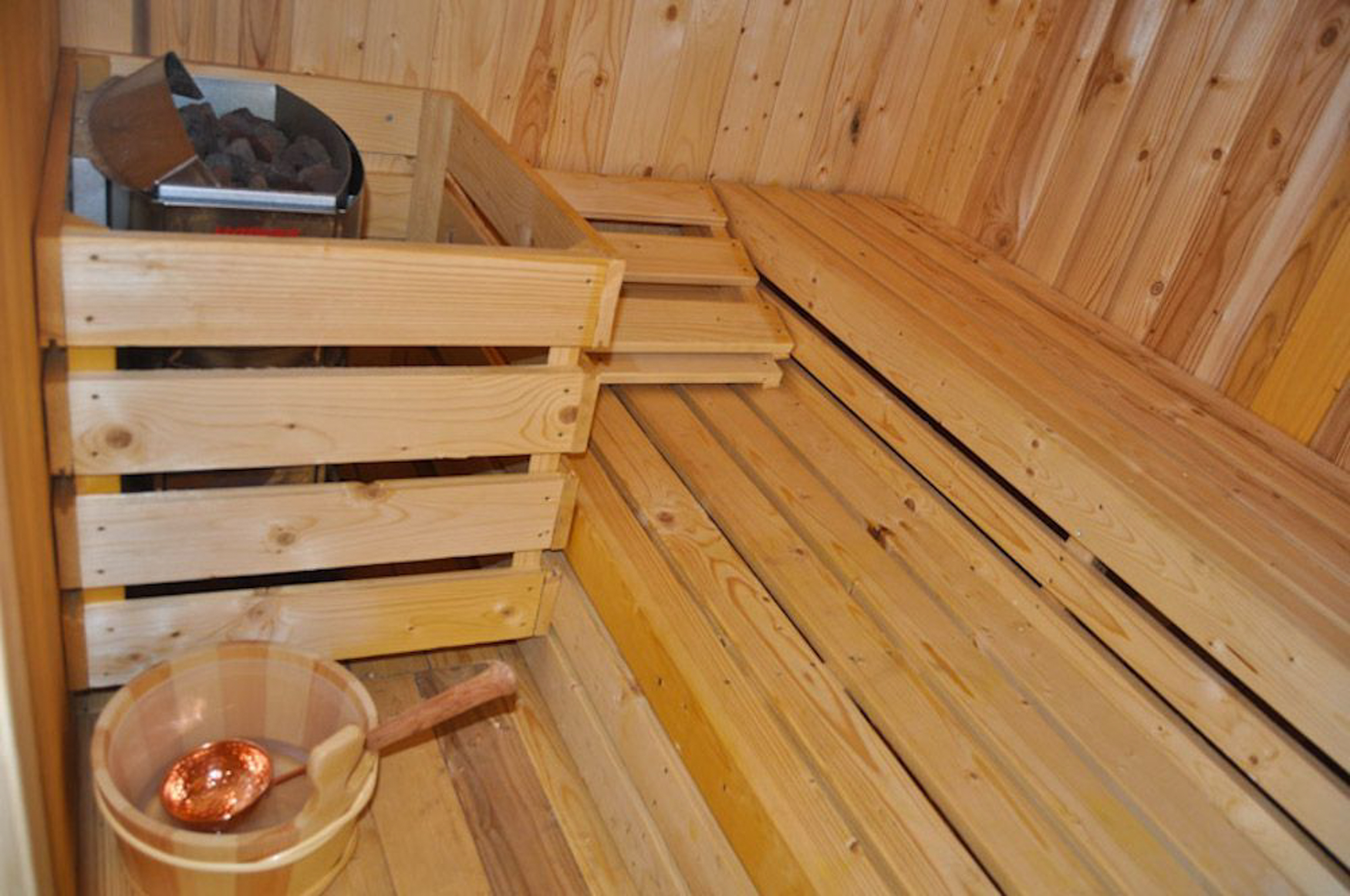 - Escalier d’accès à la piscine, au barbecue, au sauna et au jacuzzi