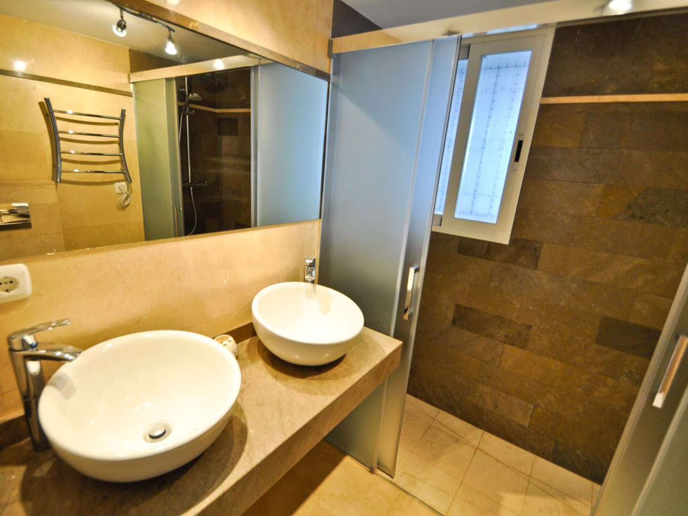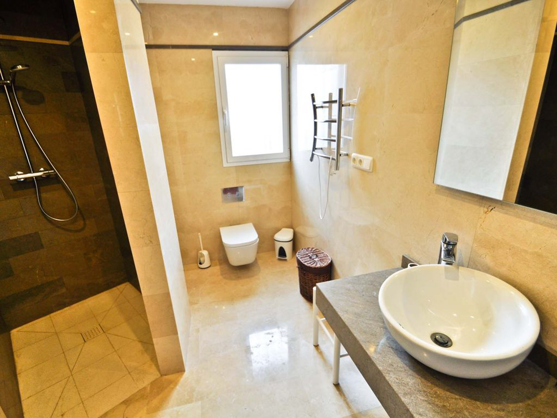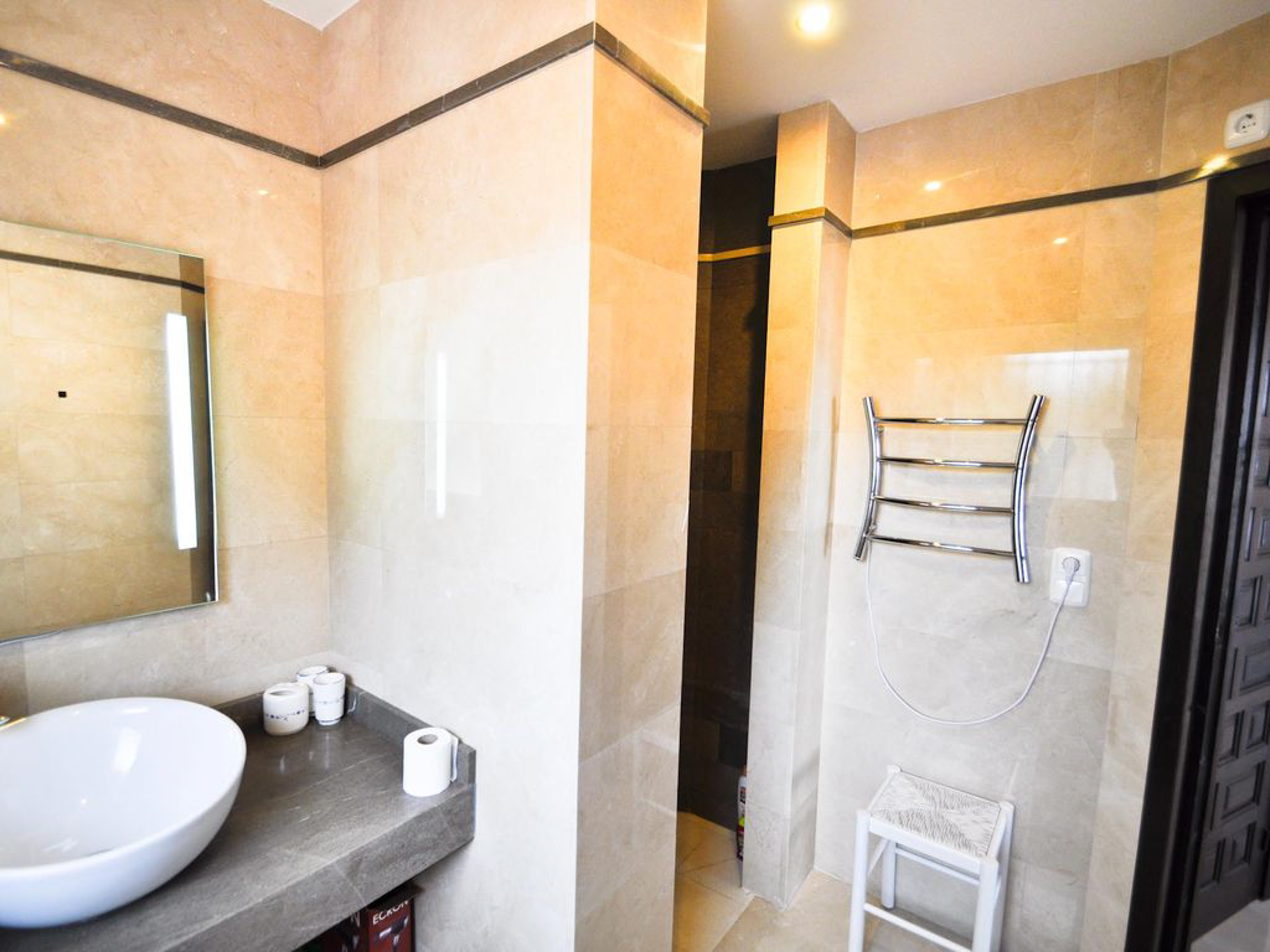 - 1 chambre avec 2 lits de 90 cm et salle de bain avec lavabo, cabinet, douche splendide avec robinets thermostatiques et grande armoire