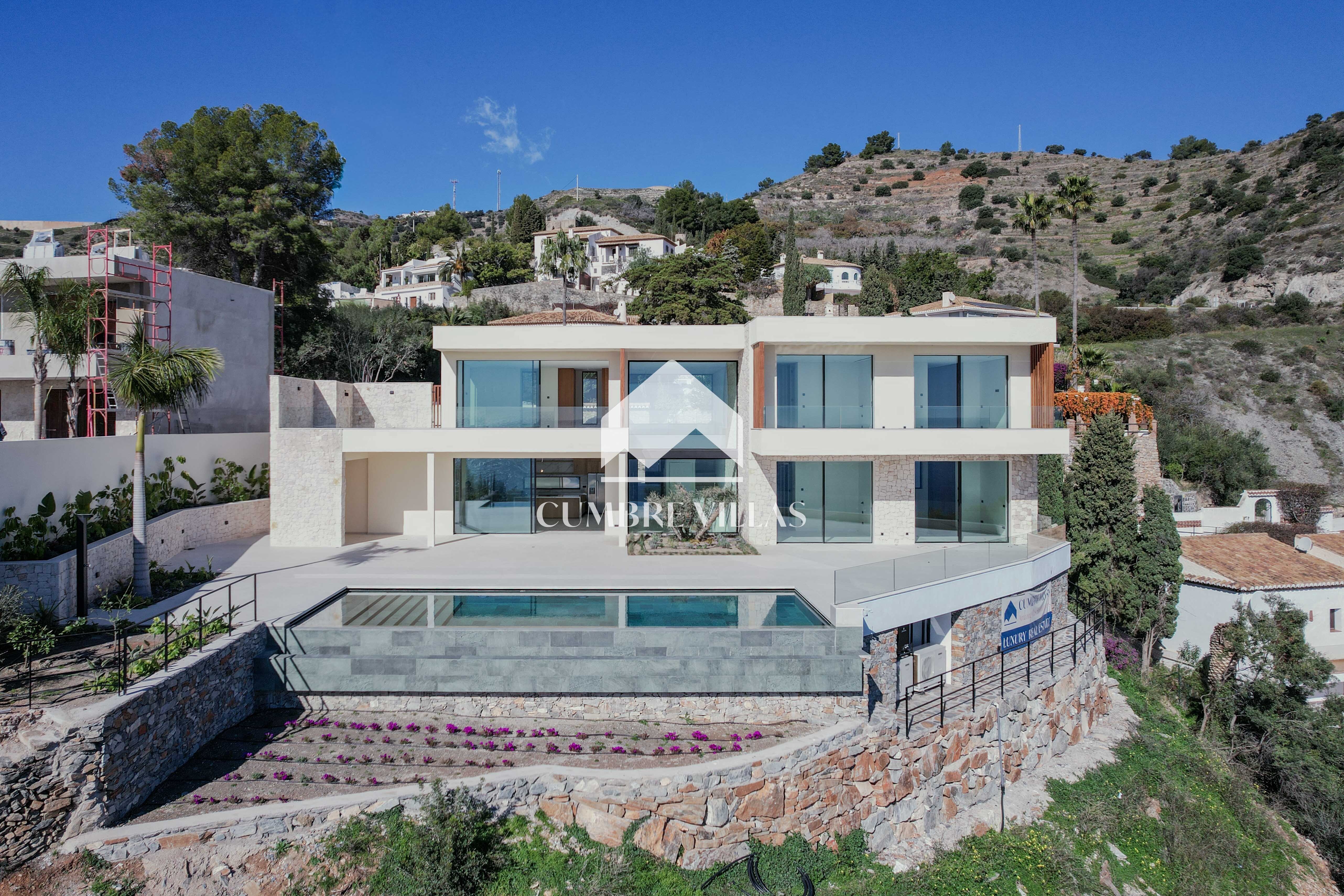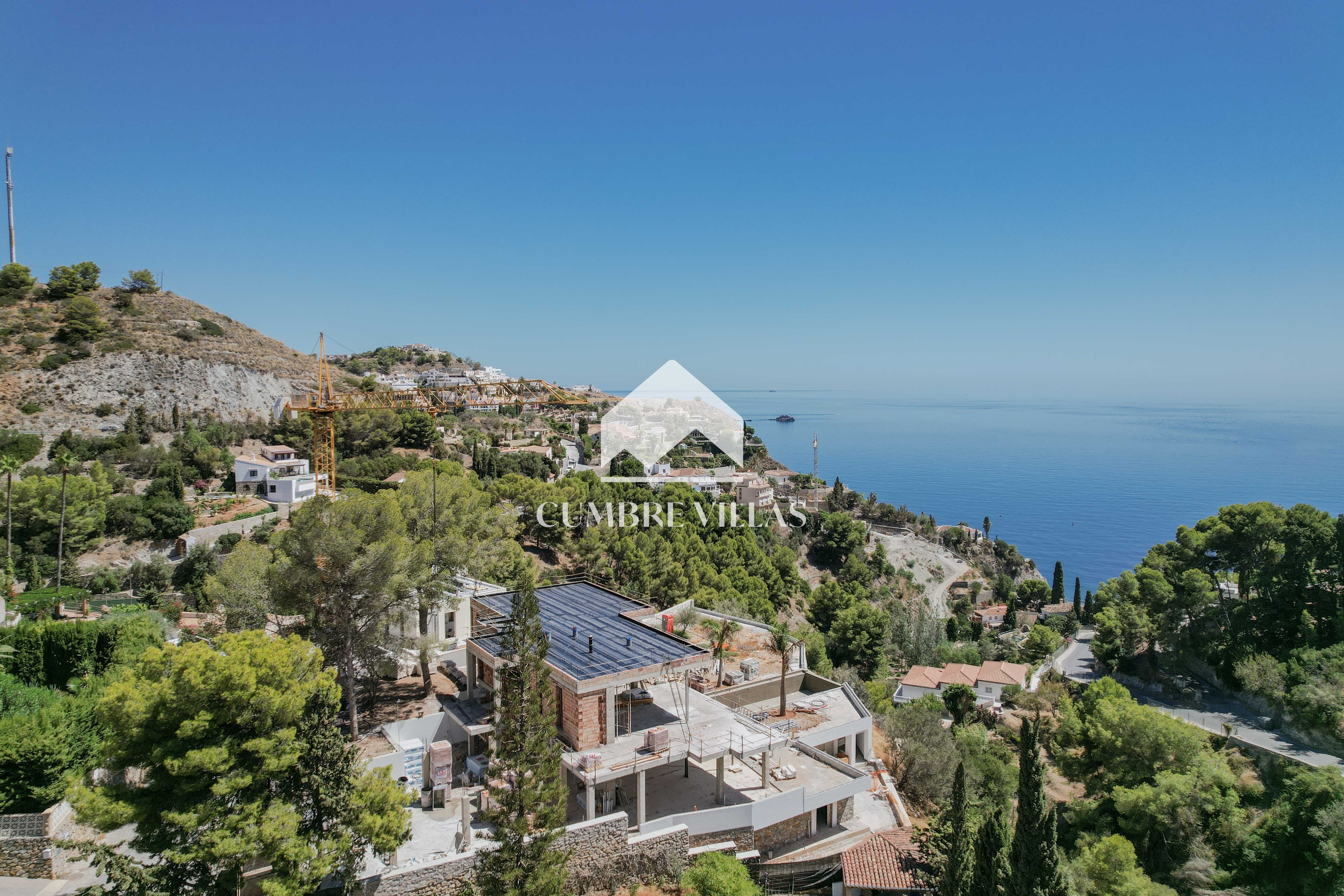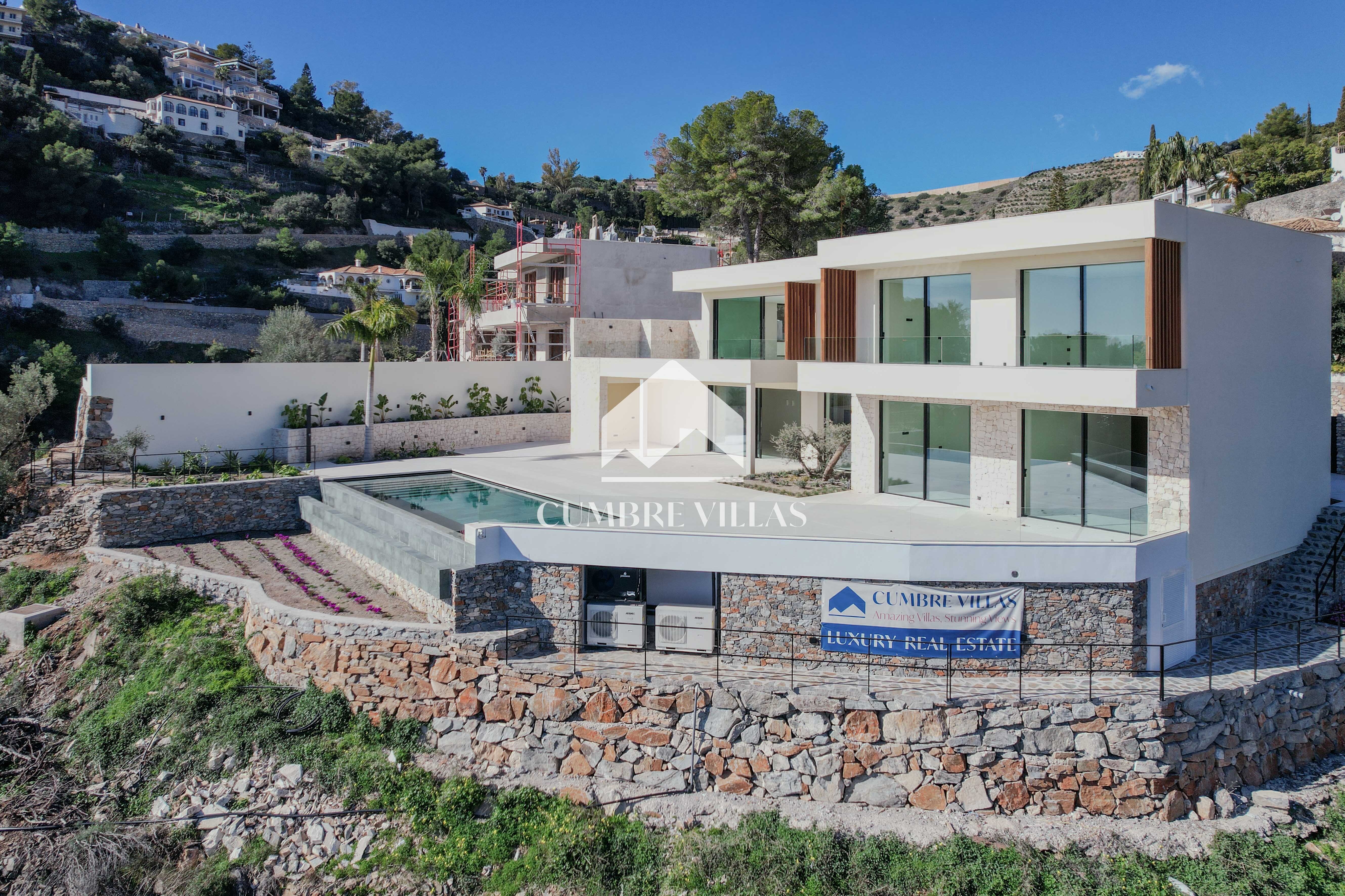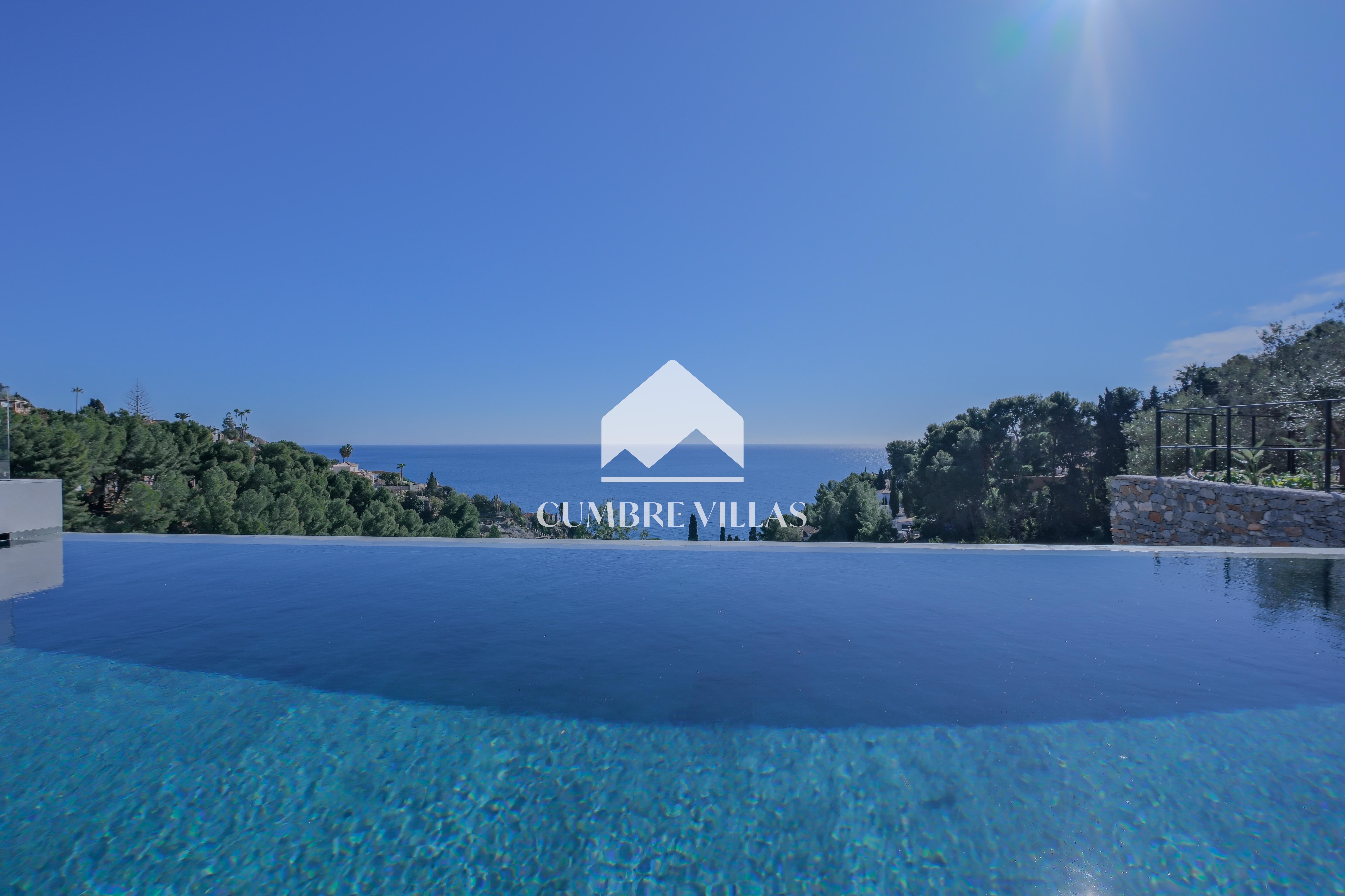 Moderne nieuwbouwvilla in de wijk Cotobro in Almuñécar met een aangelegde tuin, verwarmd zwembad en prachtig uitzicht.