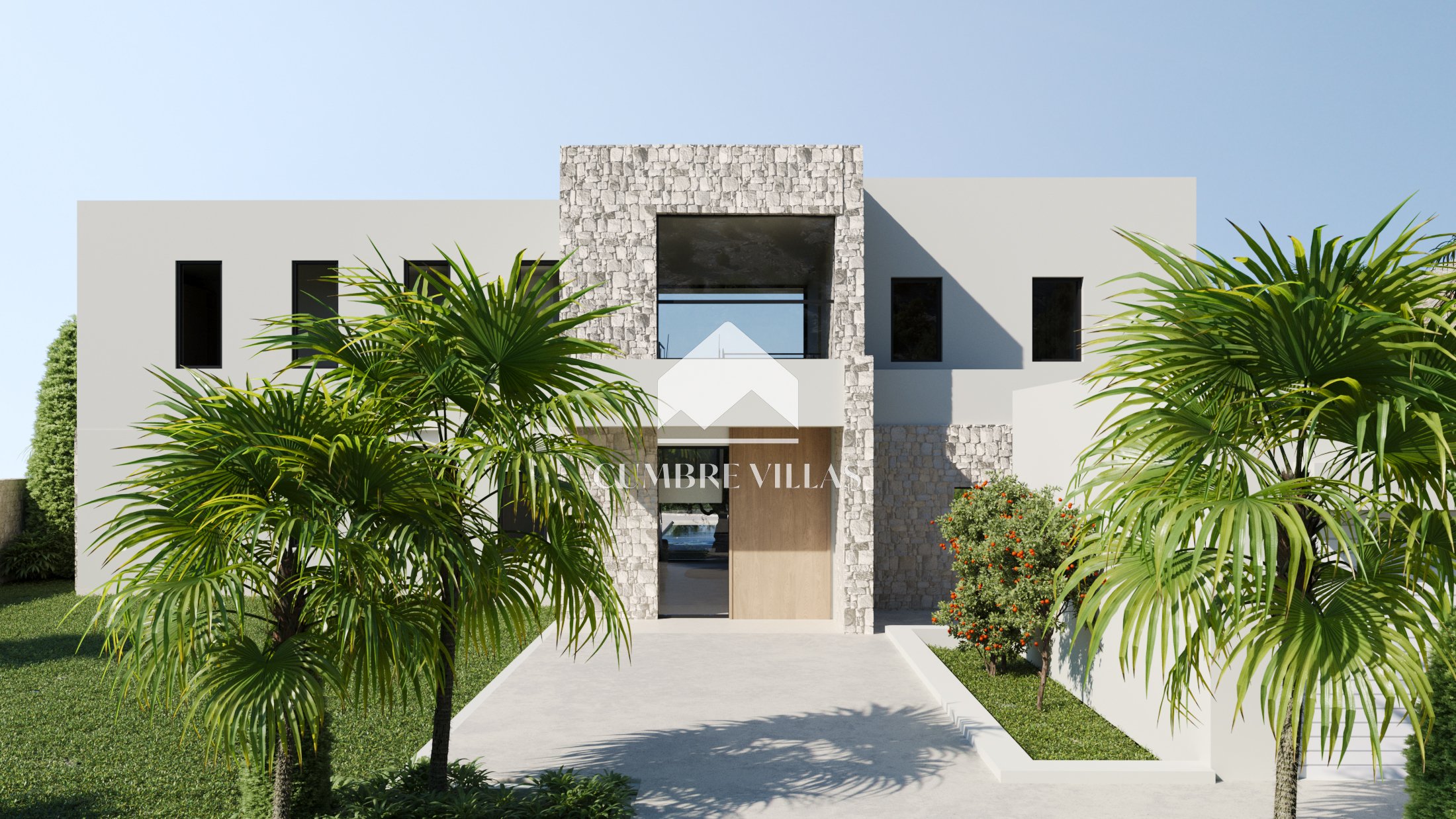 Bij aankomst bij de woning is er een oprit met carport voor twee auto’s en een garage voor twee auto’s. Vanaf hier leiden een paar treden naar de toegangspoort van het eigendom. Bij het openen van de poort wordt u verwelkomd door een uitgestrekte voortuin en een pad dat leidt naar de villa.